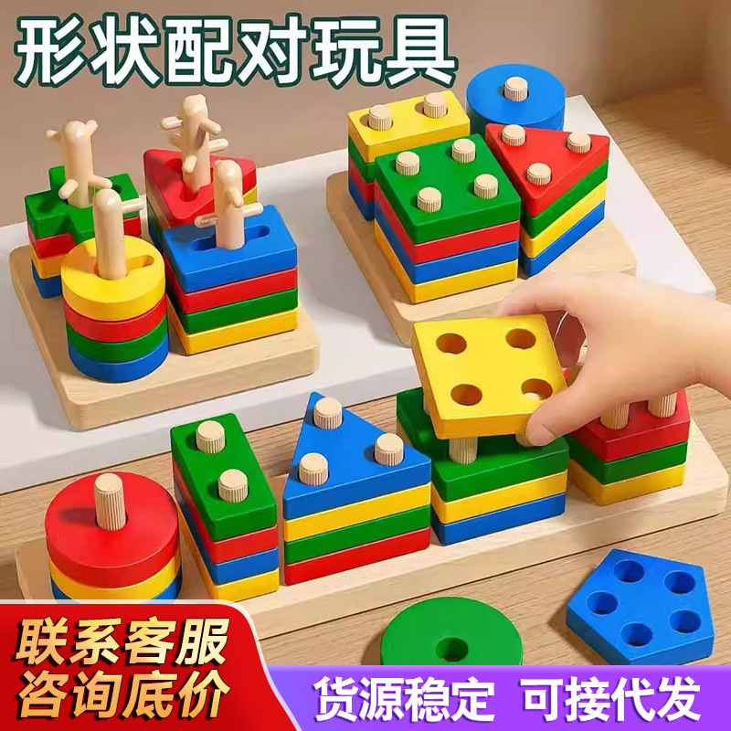 代件木製蒙氏早教玩具幾何形状セット柱知育認知5セット柱積み木ペア