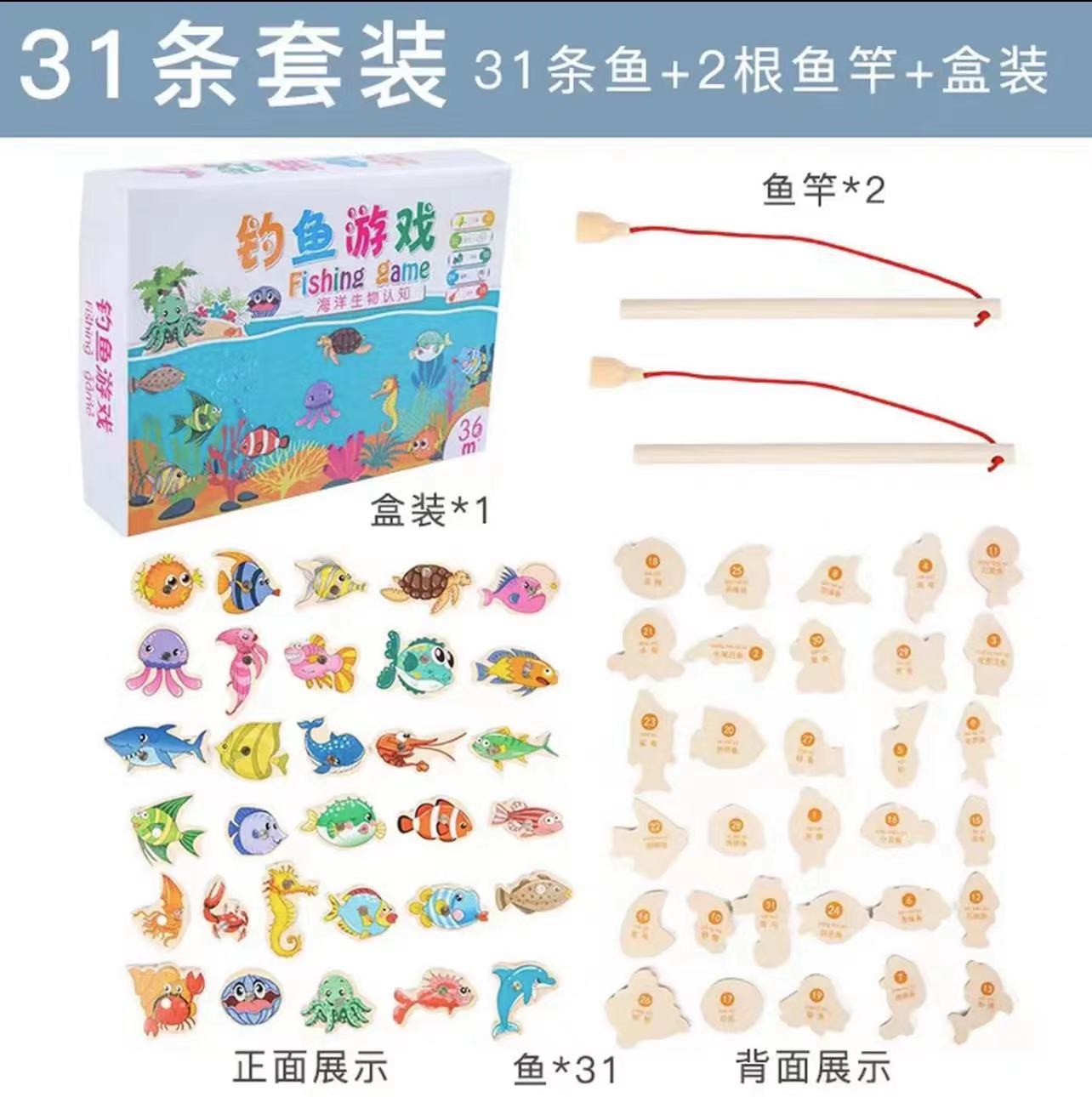 子供磁気釣竿玩具木製釣竿赤ちゃん釣り玩具アクセサリー幼稚園磁気教具