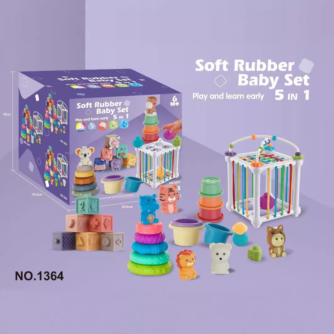 クロスボーダー赤ちゃん水遊びソフトゴム畳楽早教認知塞楽デジタル動物積み木指偶セット