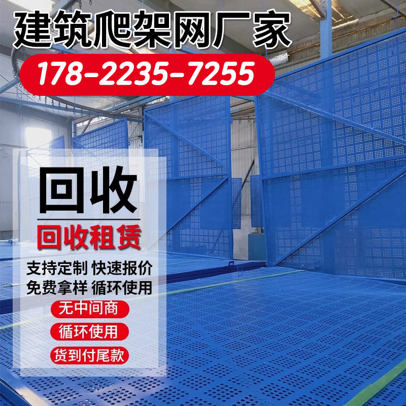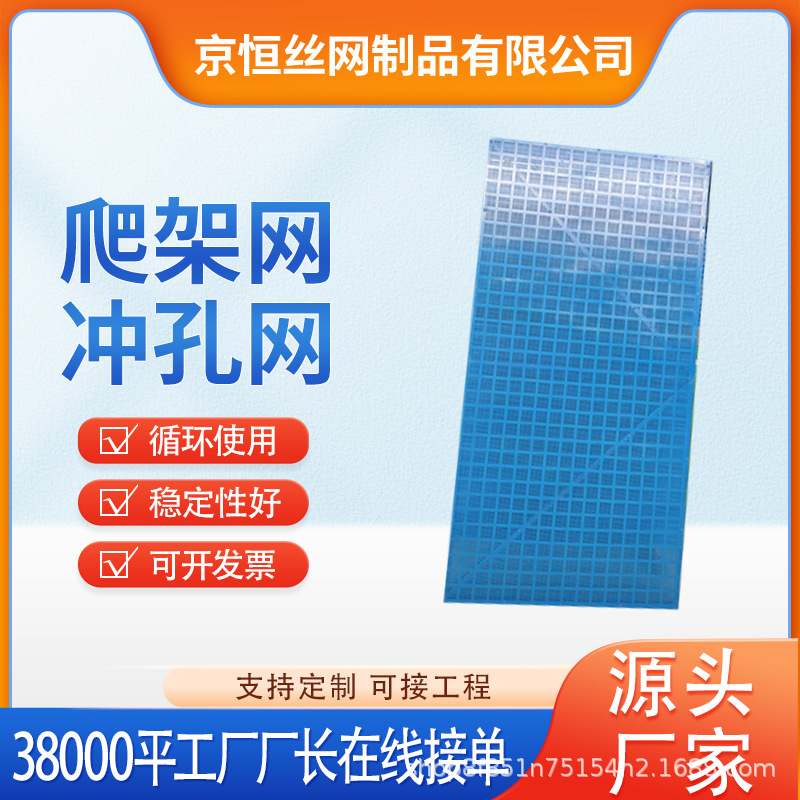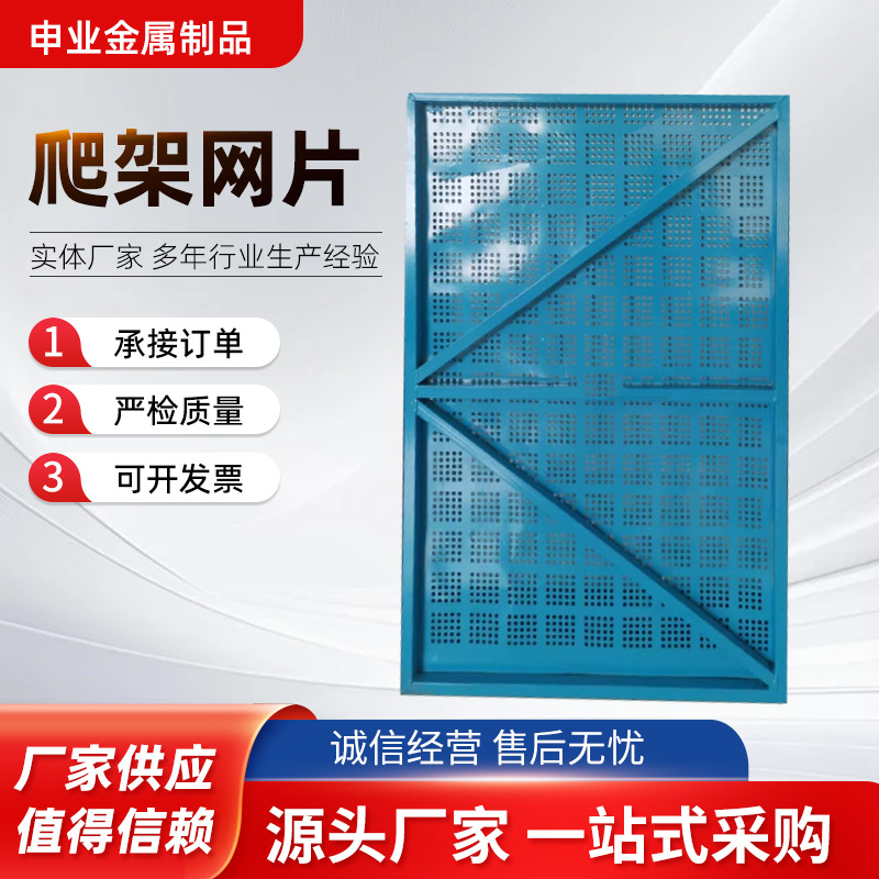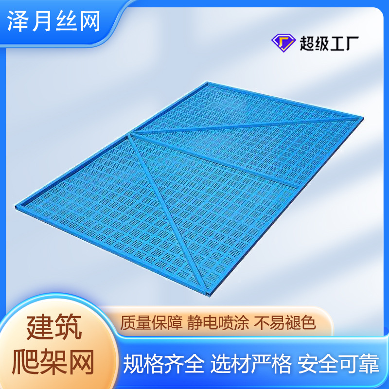 実体メーカーがネット建設現場の鋼板ネット安全金属防護ネットに青いパンチネットを作ってネットを登る
