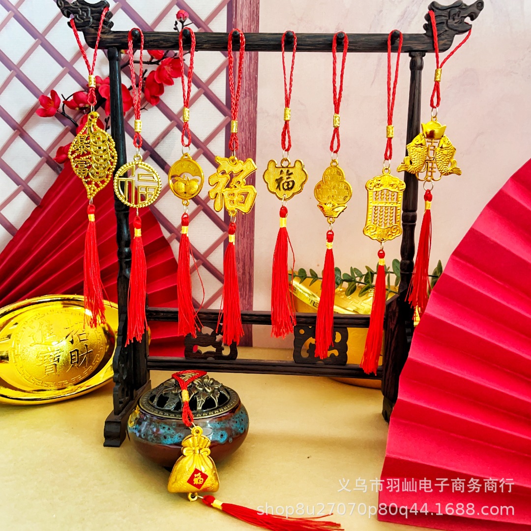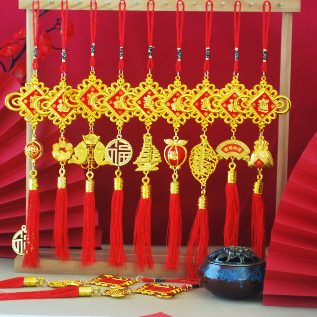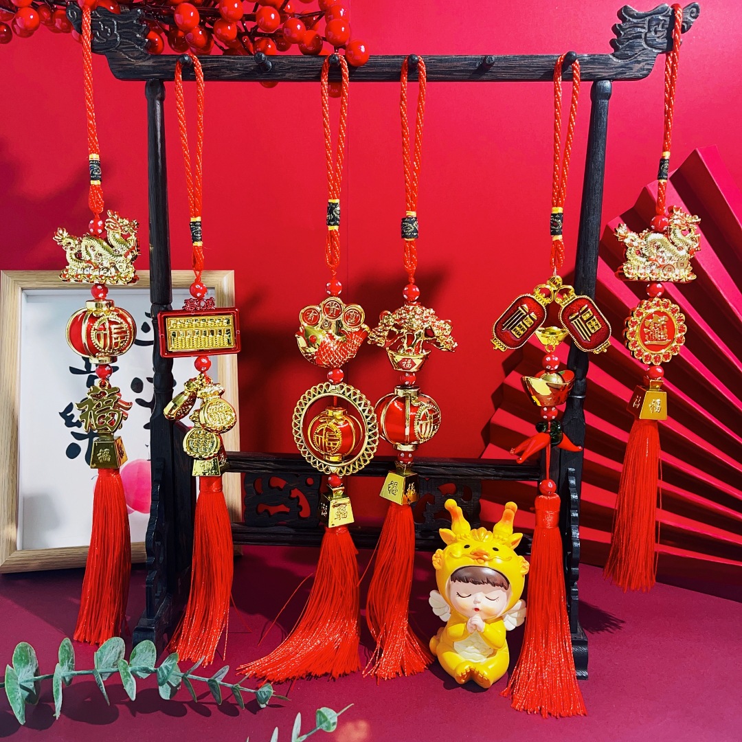 2024龍年中国結新年装飾ジョー移転ペンダント金色募集C植物盆栽旧正月お祝い車オンフック