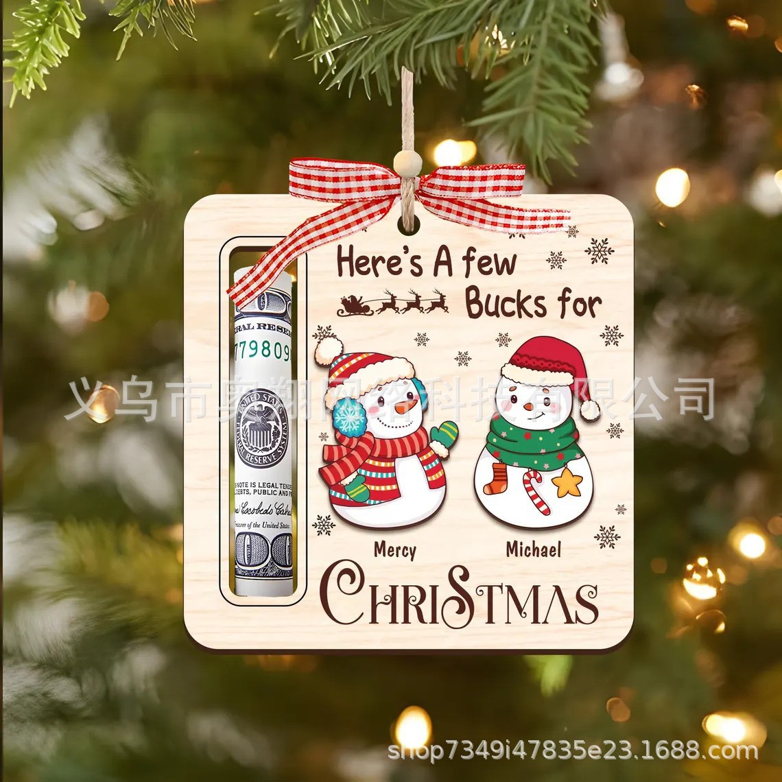 クリスマス木製装飾看板ホームクリスマス祭り雰囲気装飾雪だるま小銭札ストラッププレゼント木製タグ