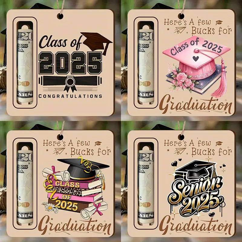 2025 卒業シーズン 4 個 2025 卒業シーズンギフト木製マネークリップ卒業キャップパターンデザイン卒業パーティー