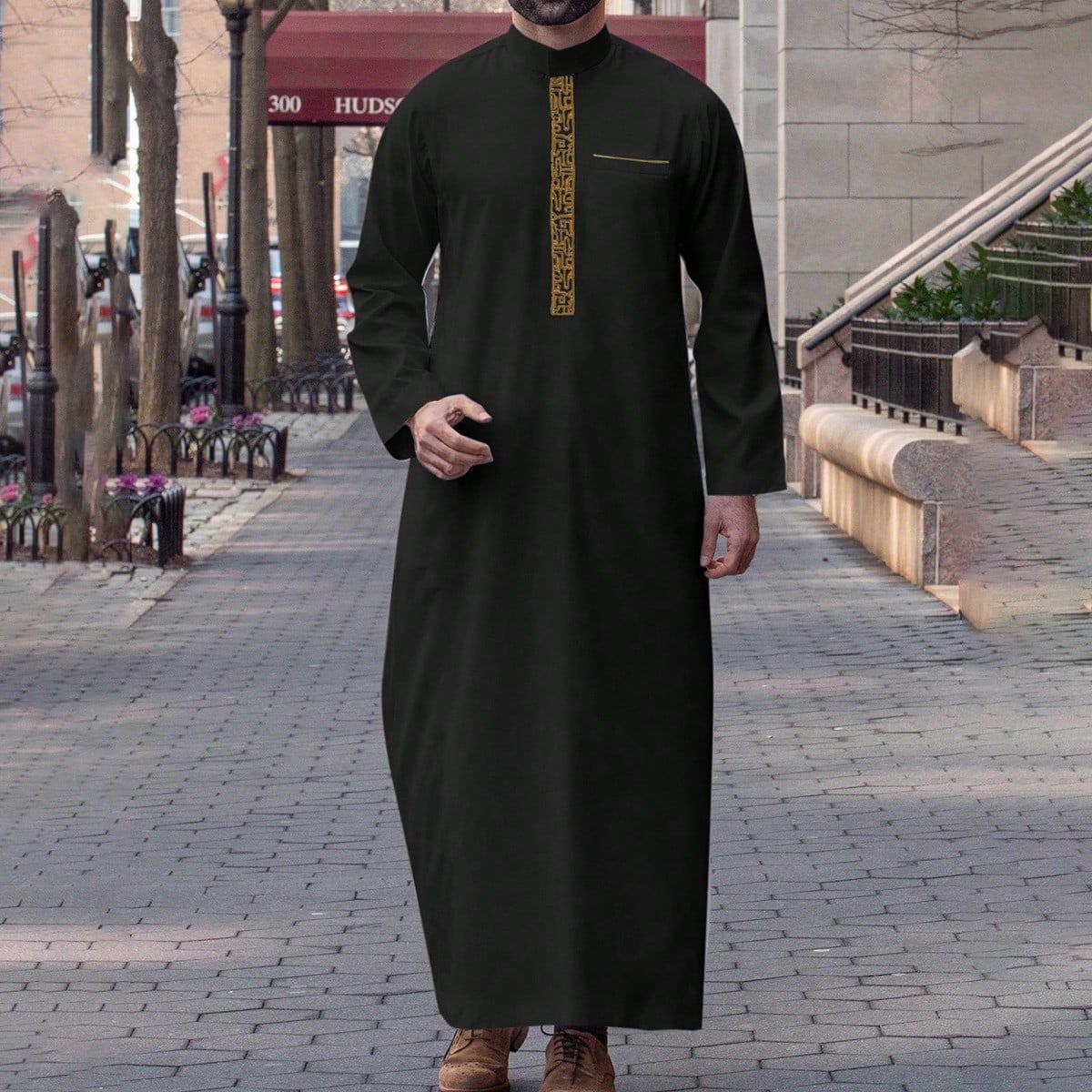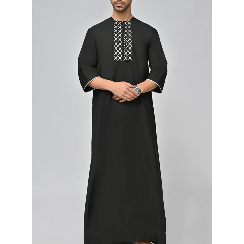 新しい国境を越えた外国貿易中東イスラム教徒長袖エスニックスタイル刺繍アラビアスタンドカラーメンズローブ在庫あり