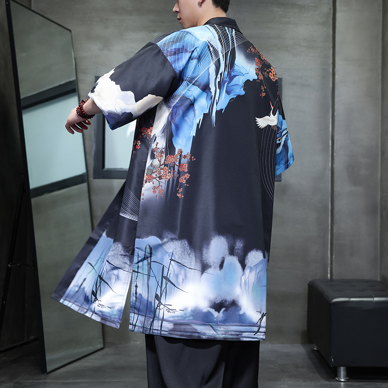2023夏の新型中国風メンズファッション仙鶴祥鹿漢服カーディガン