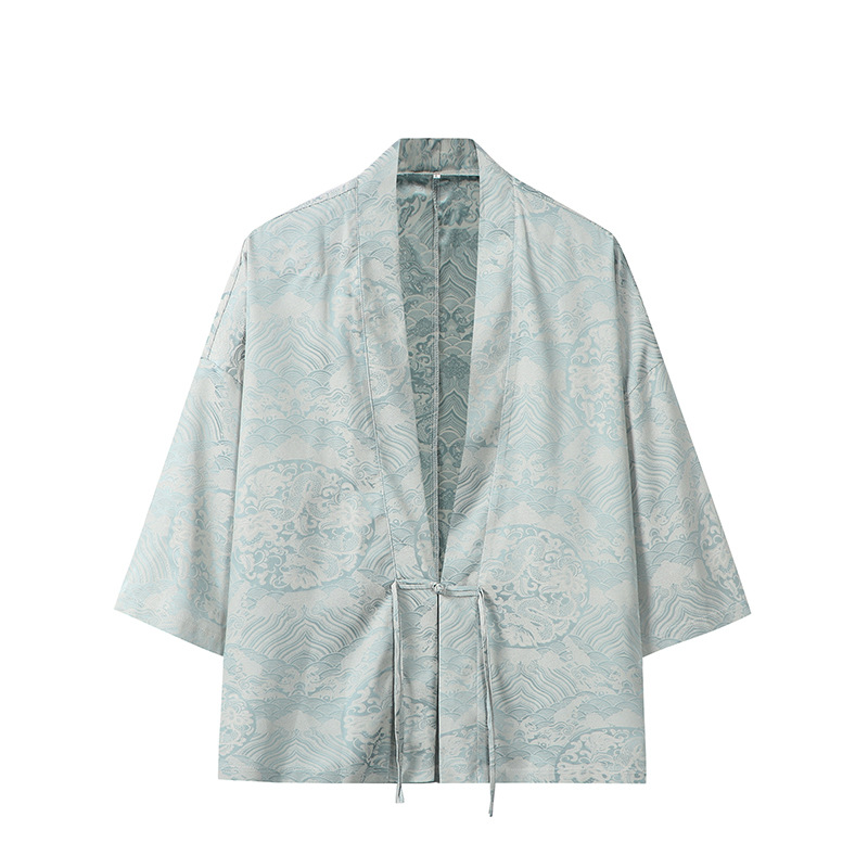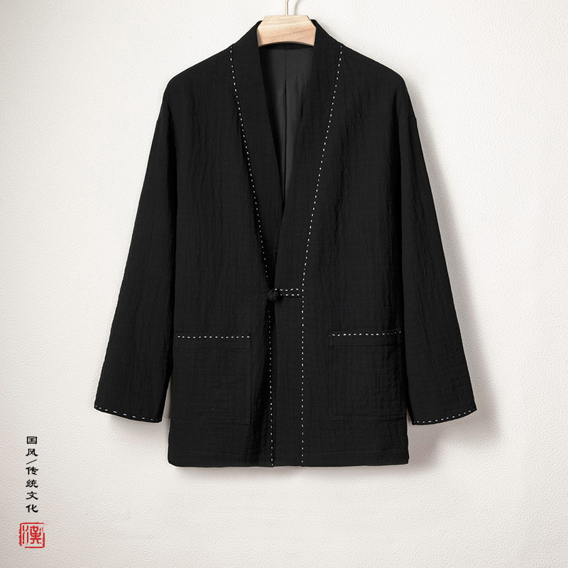 2024春夏新作中国風メンズ改良汉服新中国式レトロトレンドカーディガン9分袖オーバーメンズ