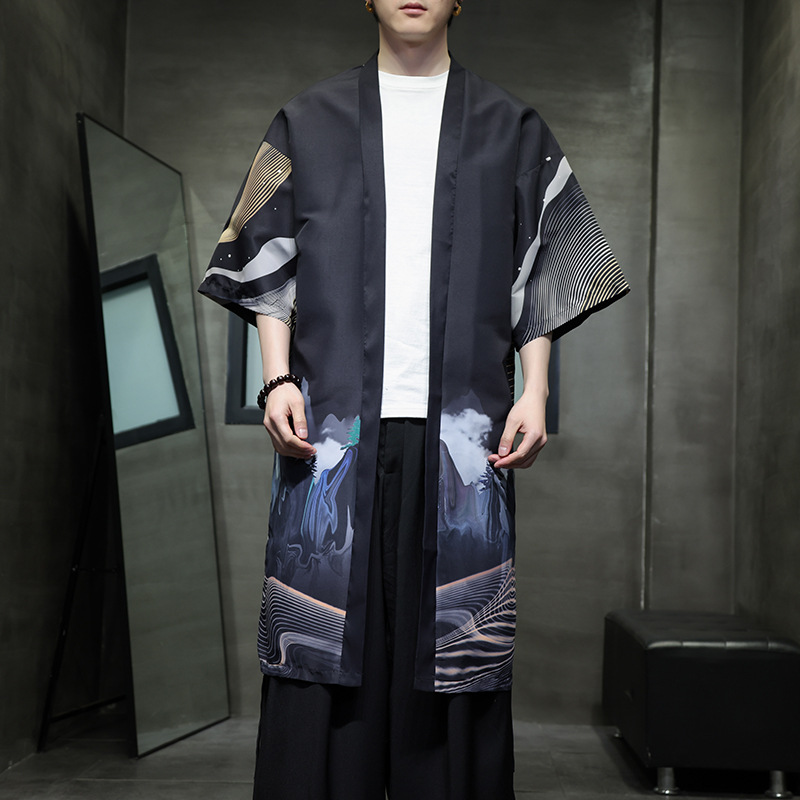 2025春夏の民族風文芸ファッション中国風メンズカーディガン日焼け止め服日系大コード道長服コート