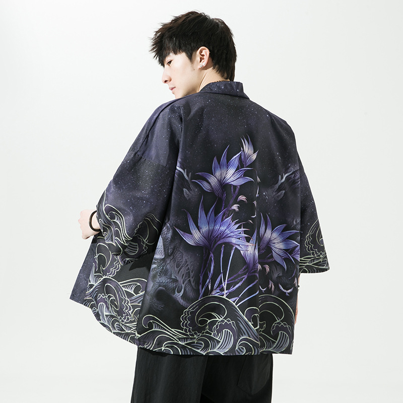 2024夏の新型中国風メンズ青葉仙草漢服カーディガン