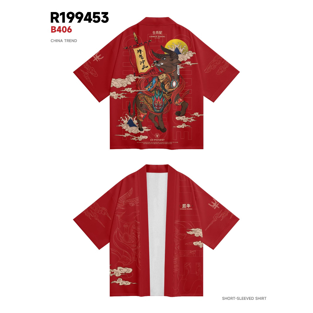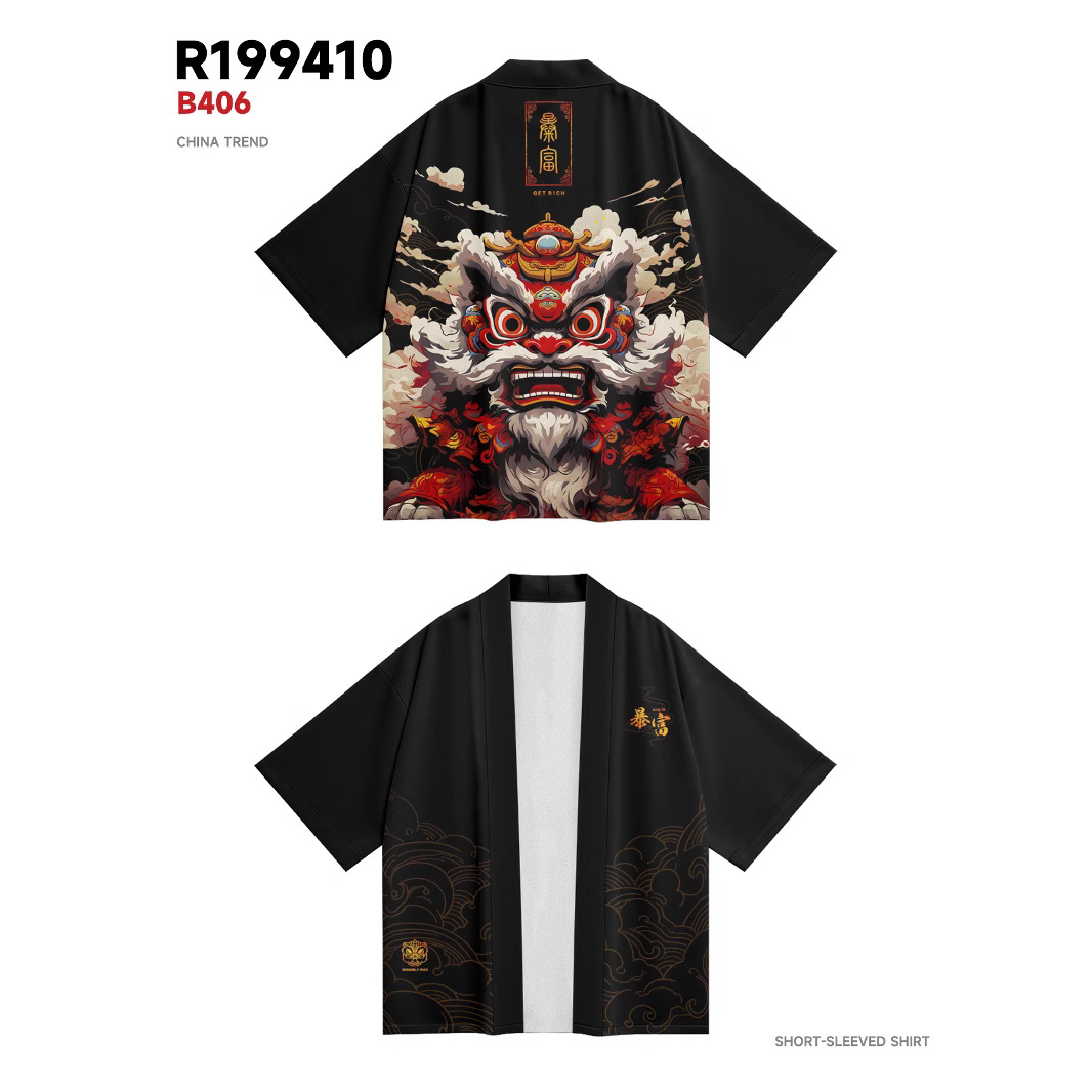 ファッションの夏の着物はクロスボーダーの生肖の昼馬のプリントの7分のシャツの道衣のカーディガンのゆったりしている男性の羽織の着物です。