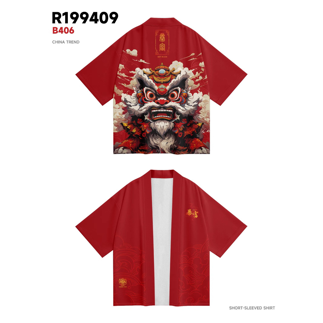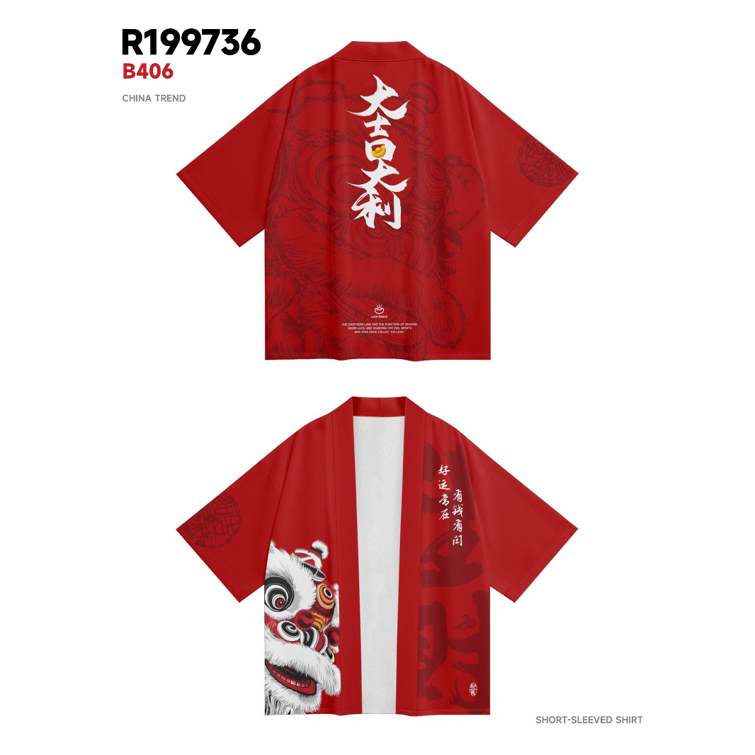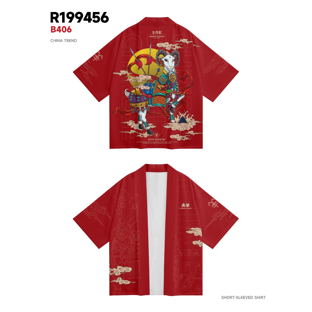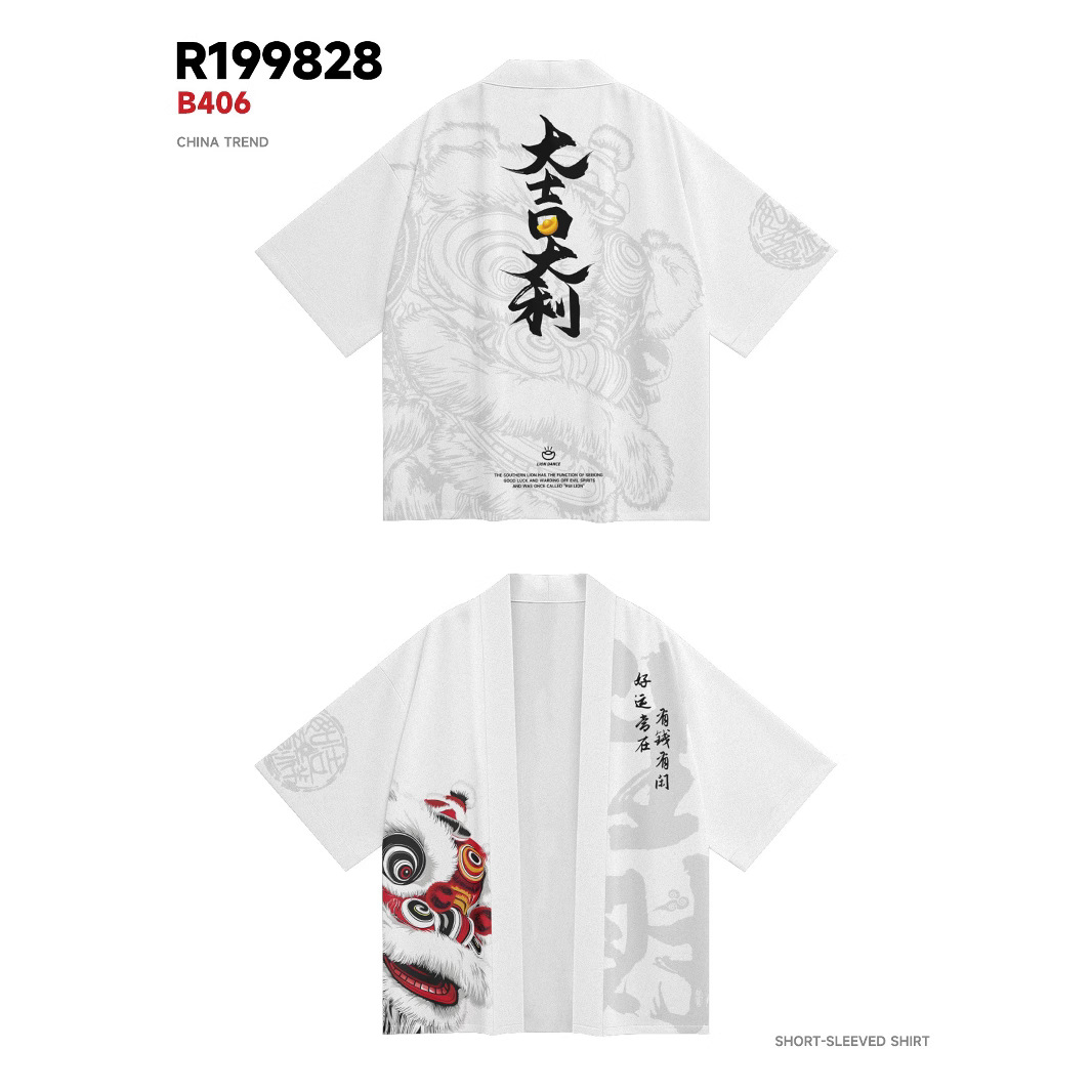 ファッション夏の着物クロスボーダー未羊プリント七分シャツ道着カーディガンゆるい男羽织着物