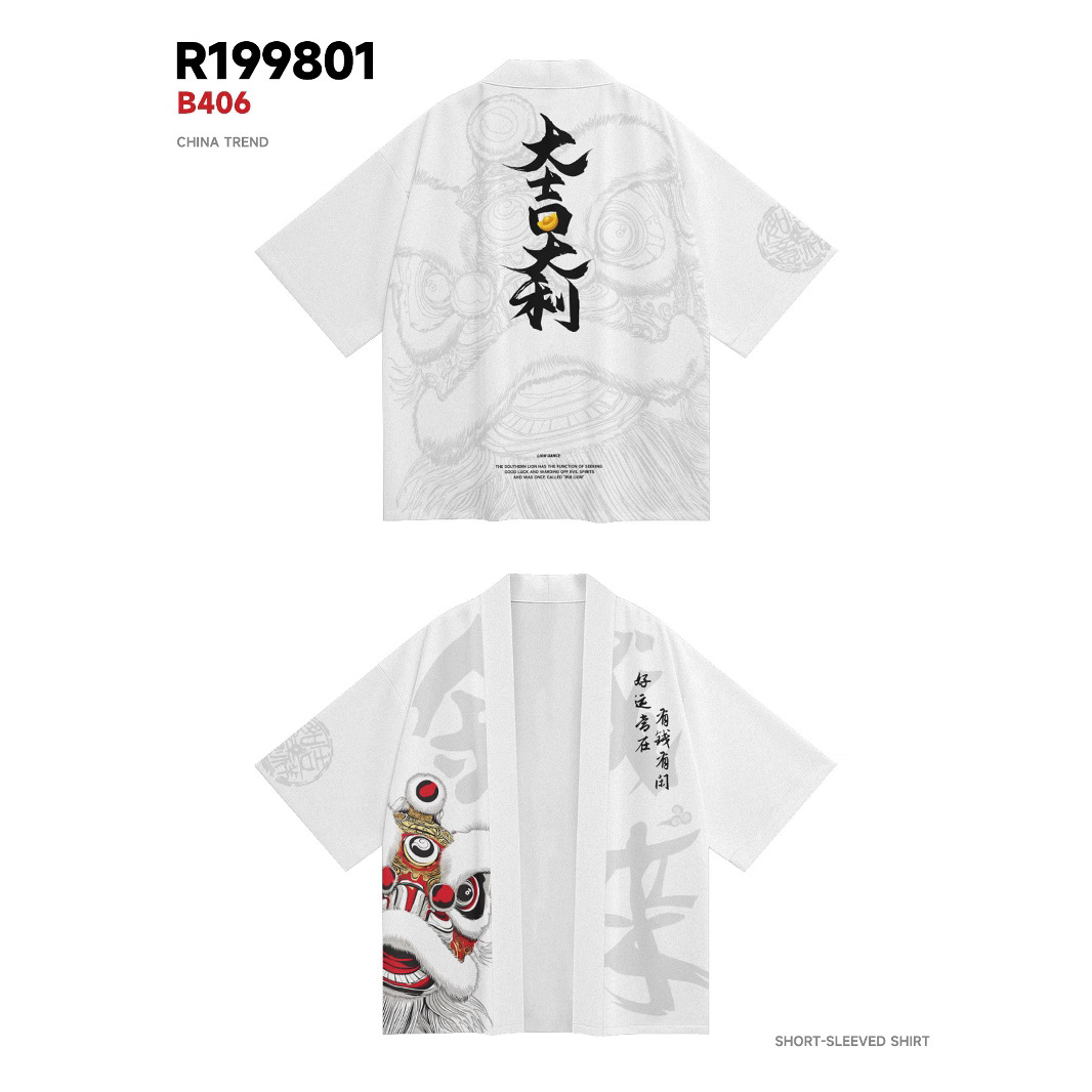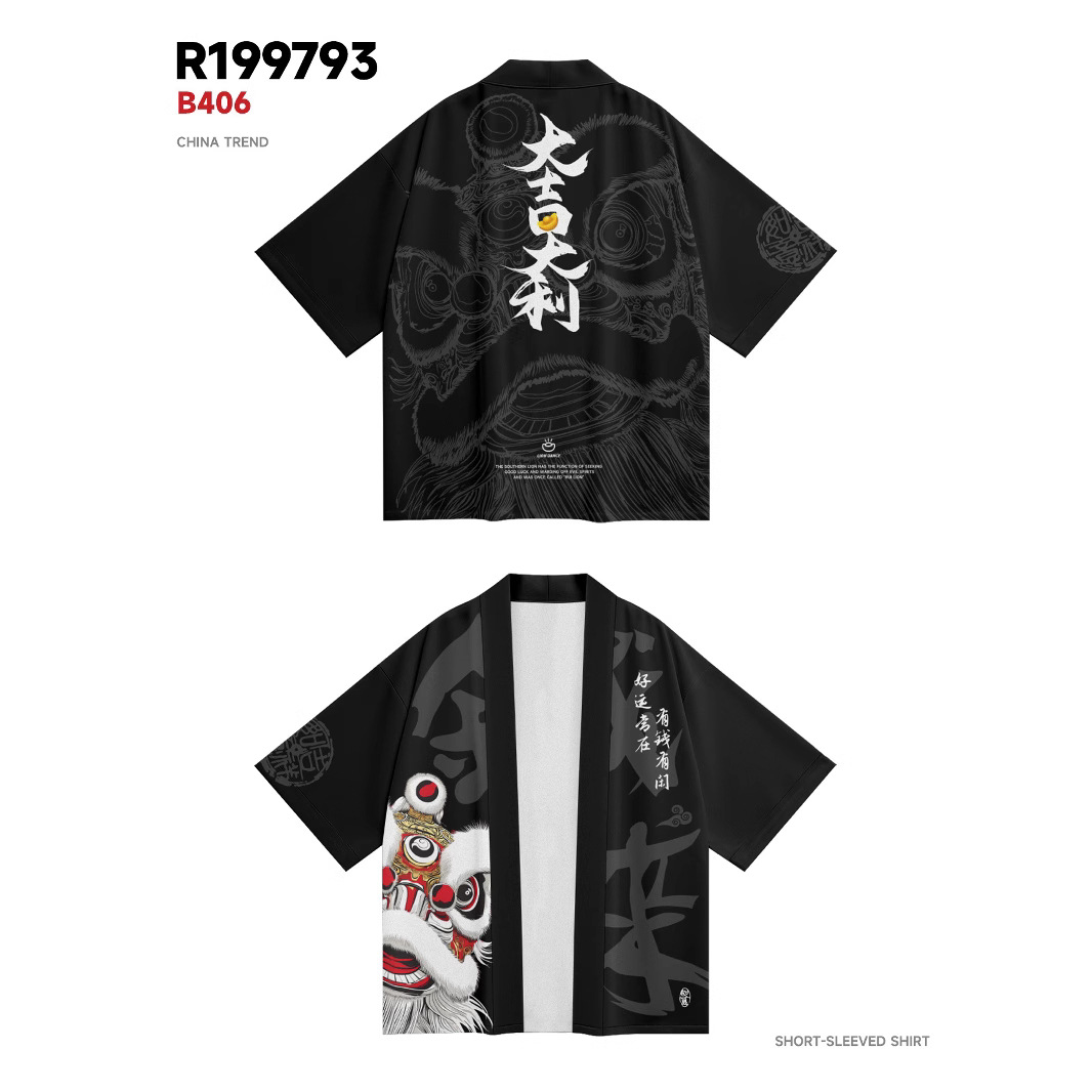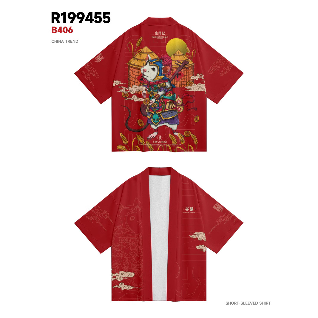 ファッション夏着物クロスボーダー子鼠プリント七分シャツ道着カーディガンゆるい男羽织着物
