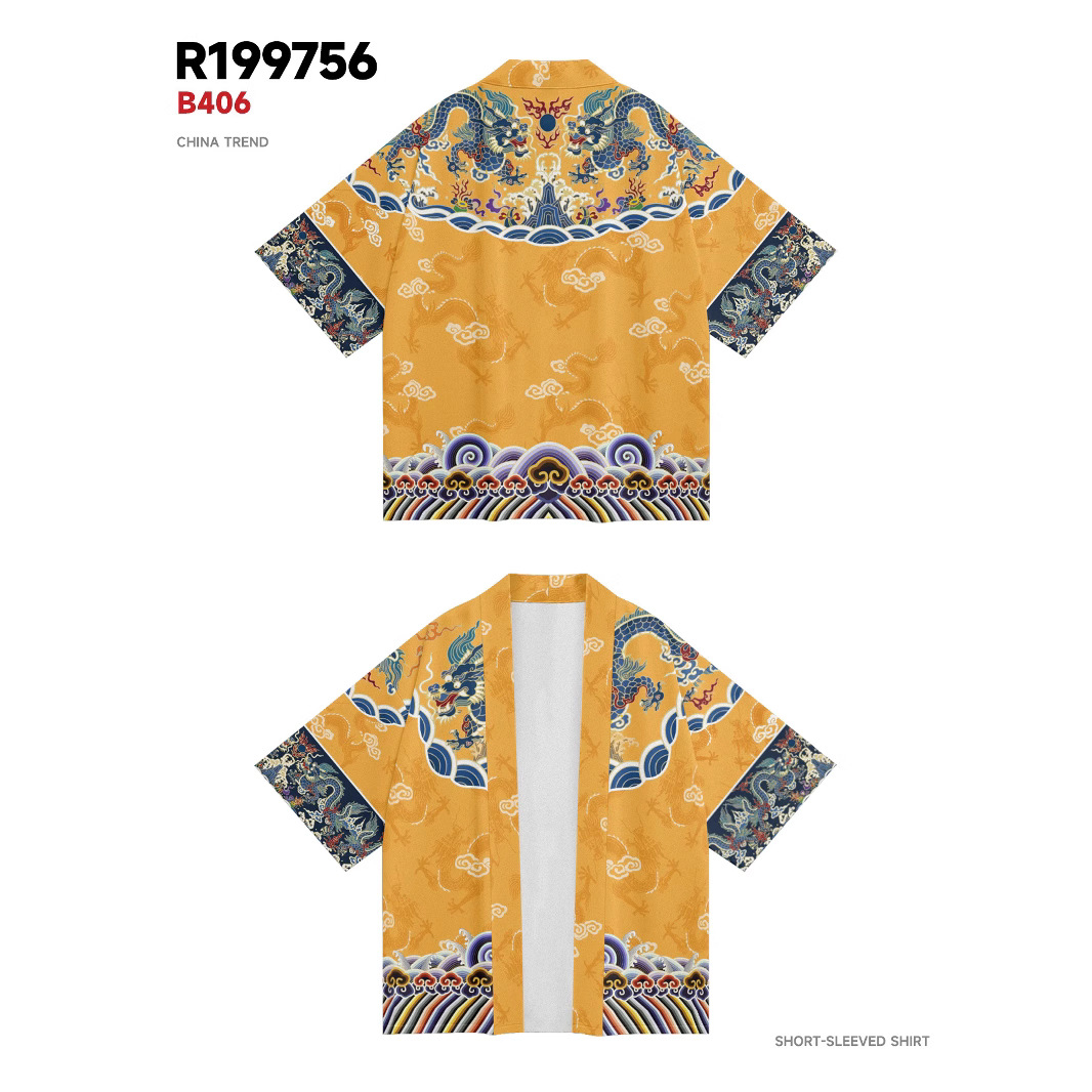 ファッションの夏の着物はクロスボーダーの竜のプリントの7分のシャツの道着のカーディガンのゆったりしている男性の羽织の着物です。