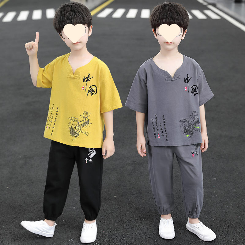 男の子夏スーツ 2025 新しい夏男の子中国風漢服子供男の子と女の子防蚊パンツスーツ