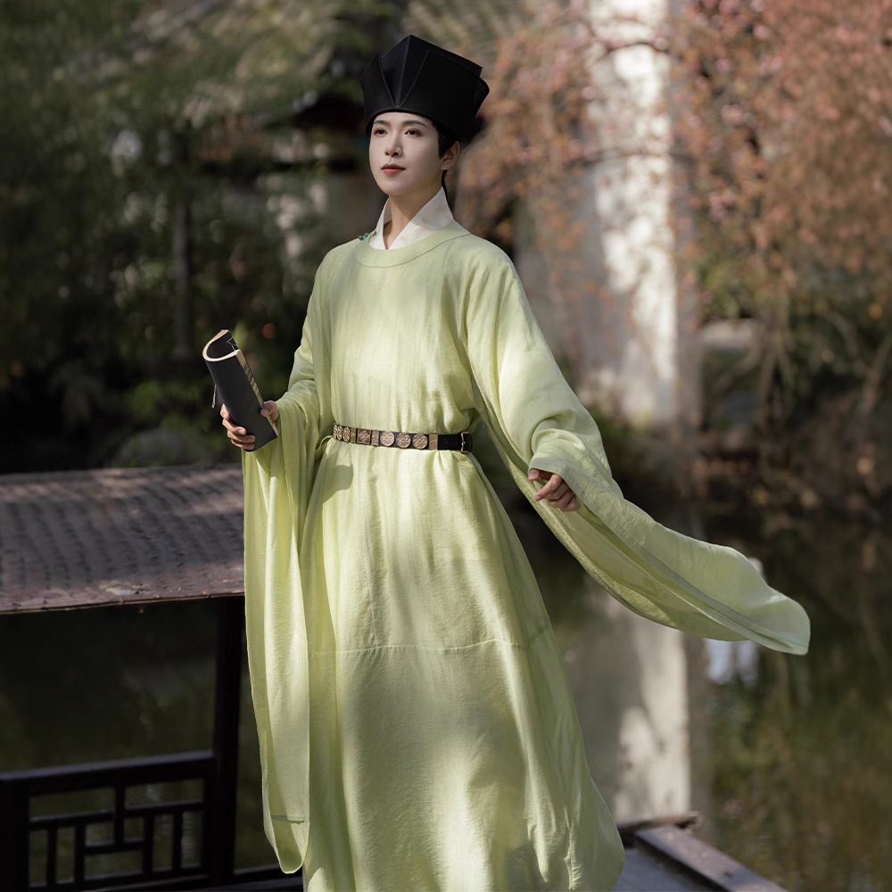 [Qingliu] 新オリジナル漢服薄いジャカード宋復元長袖ラウンドネックローブ夏のメンズスーツ