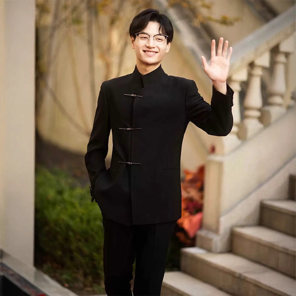 新中国式カジュアル青年装純色中山装男服セット痞帥高級感スーツドレス秋ショー