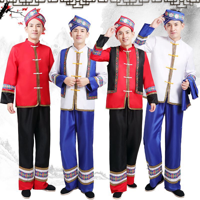 新しいミャオ族の男性用パフォーマンス服、土家族とヤオ族の服、雲南少数民族の状族と彝族のパフォーマンス服