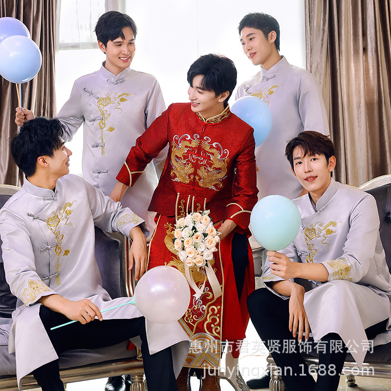 オリジナル春夏2025新作丸首長衣唐製漢服侠客の格好いい時代の刺繍男性の中国風のスーツ