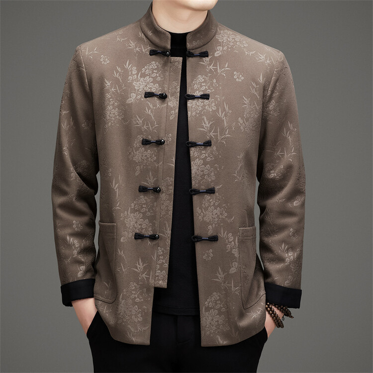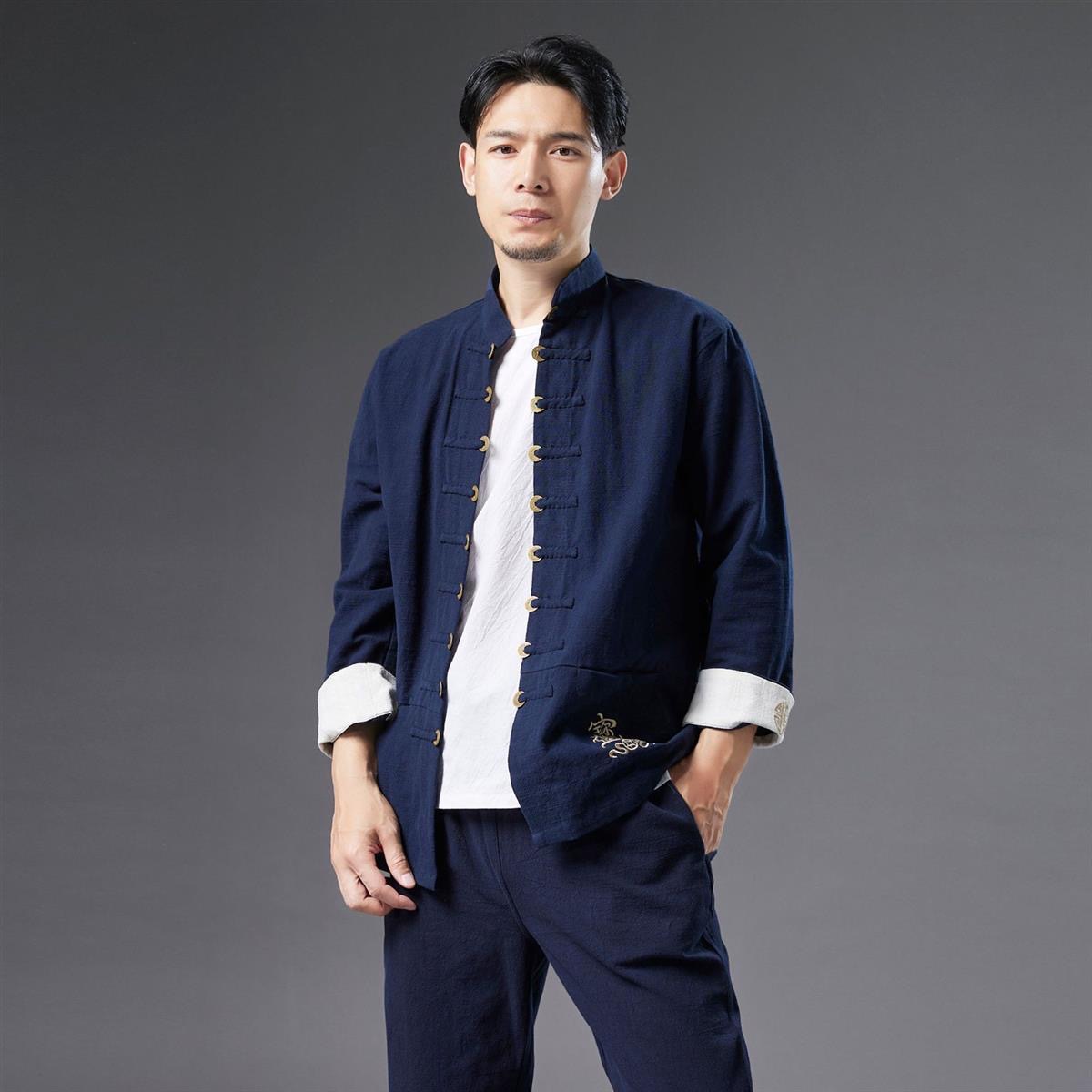 中国風唐服コート男性2024春秋刺繍龍袍立襟中国式復古盤ボタンジャケット