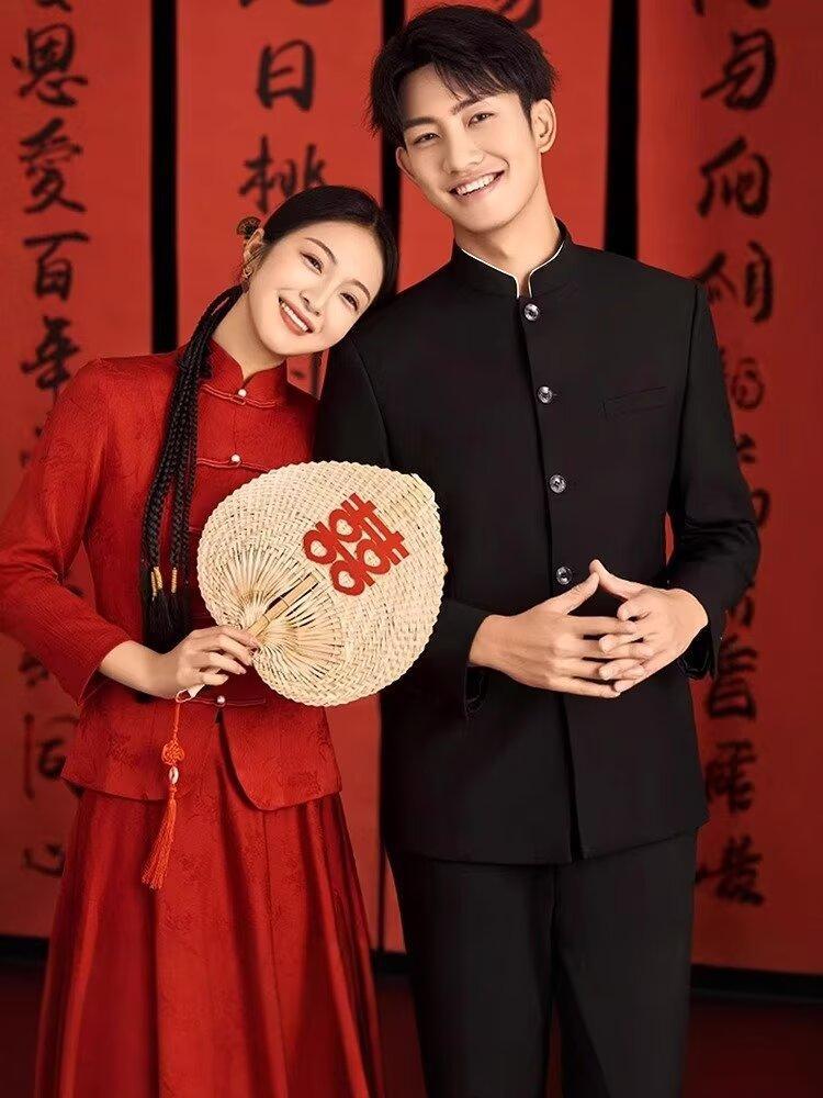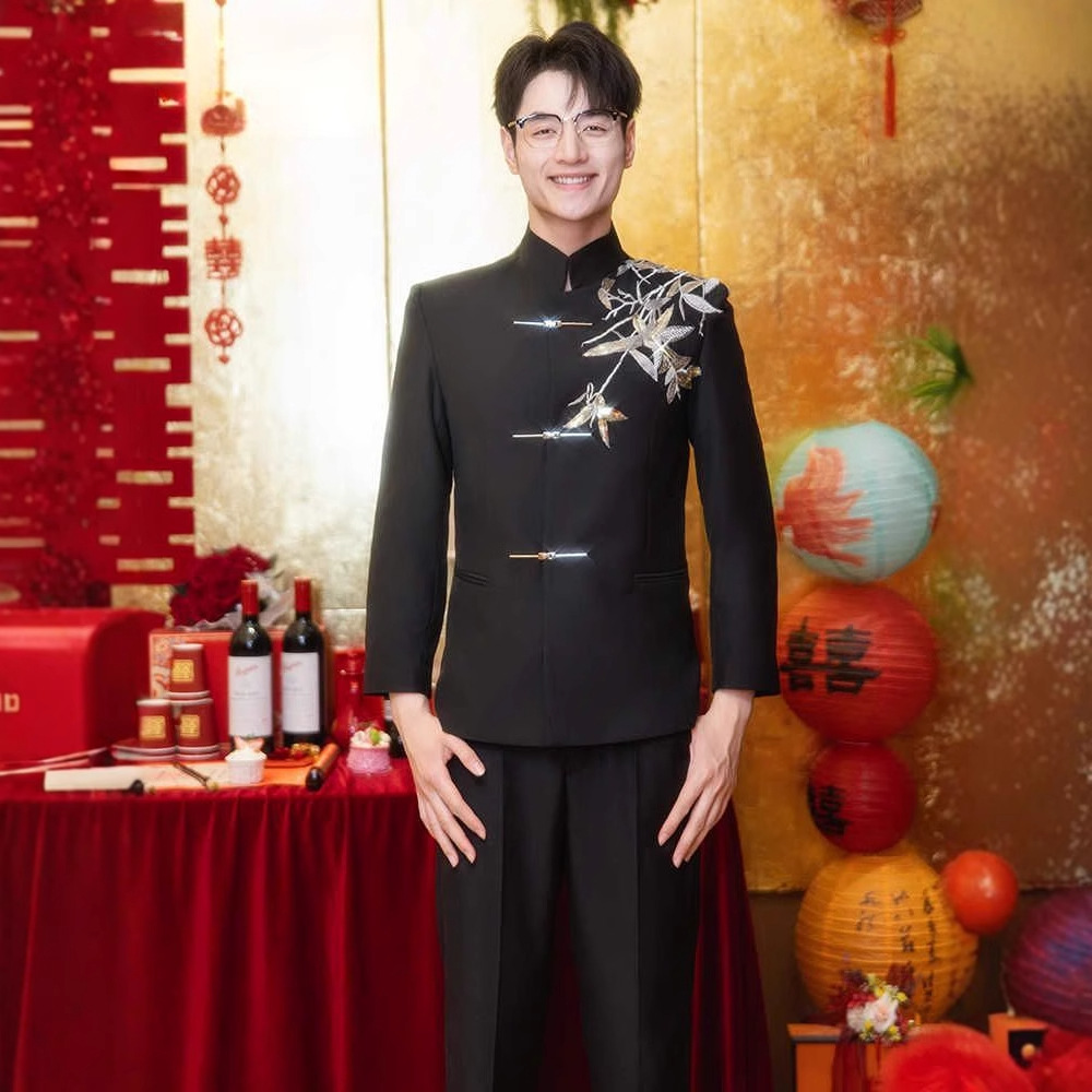 新郎結婚中山服秀禾服2025新型新中国式男性喜服結婚式唐装黒スーツ男