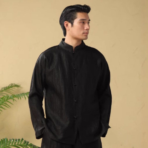 2025年中華風高級紳士服セット 香雲紗メンズシャツ 春秋 桑蚕糸 中国風唐装メンズトップス