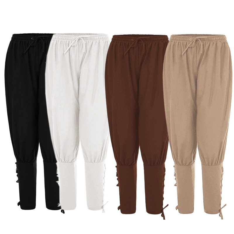 2025中世のショーは小さい足のズボンのルネッサンス風の舞台の劇の服装のズボンの純色の男性のズボンを持ちます。