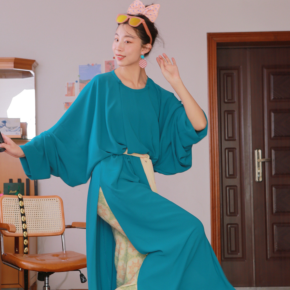 唐製湖ブルーのラウンドネックローブ、男女兼用、ゆったりとしたカップルの漢服、通勤、毎日の秋、改良された国民風