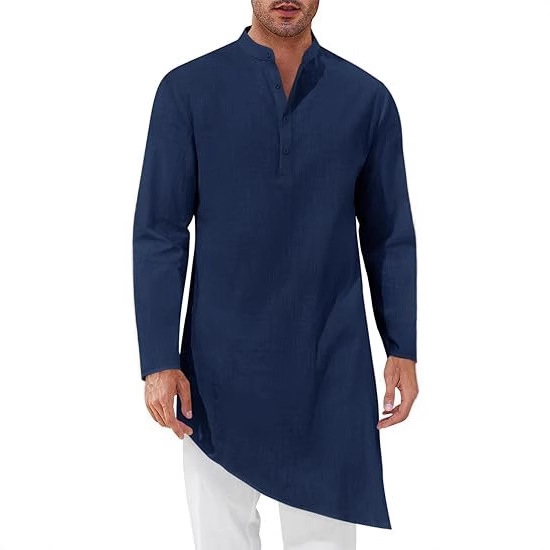 貿易クロスボーダー Amazon 独立ステーション中東メンズイスラム教徒スリットローブメンズスタンドカラーミッドレングスシャツ