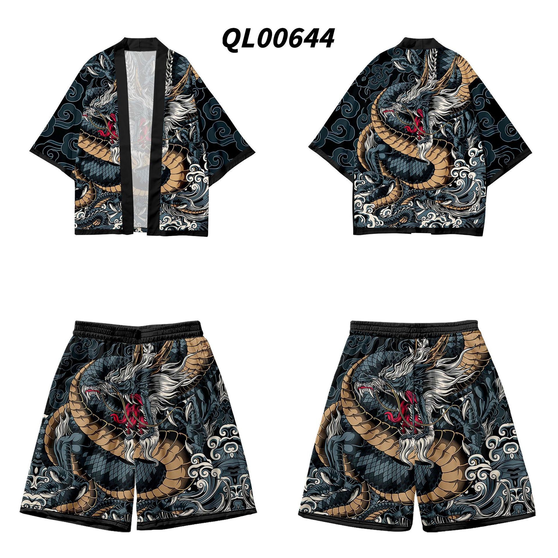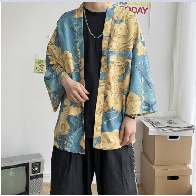 国境を越えた新製品浮世絵クリエイティブイラスト鶴ローブマント和風七分袖カジュアルルーズ着物羽織