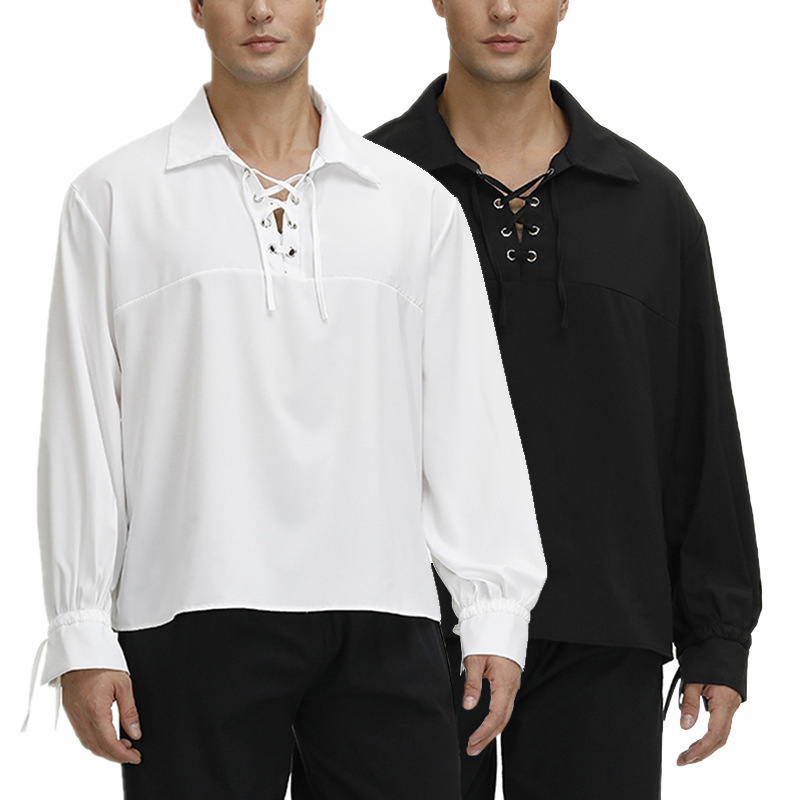 2025 メンズ中世ルネッサンスレースアップソリッドラペルシャツハロウィンドラマステージパフォーマンス衣装