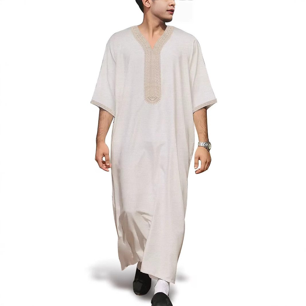 2024 新中東ローブミッドレングス袖刺繍赤い封筒メンズローブ AliExpress 半袖クロスボーダーメンズルーズ