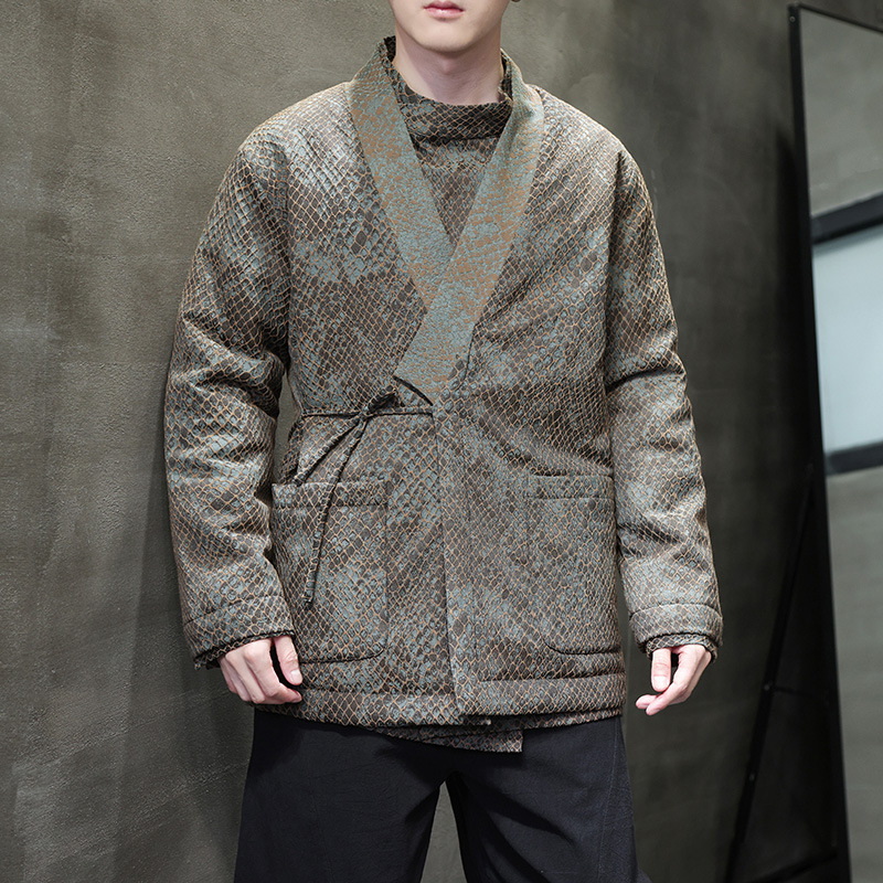 2023 秋と冬の中国風の厚いコットンパイソン柄ジャカード男性と女性のカップルのための漢服ローブ新しい中国風のジャケット