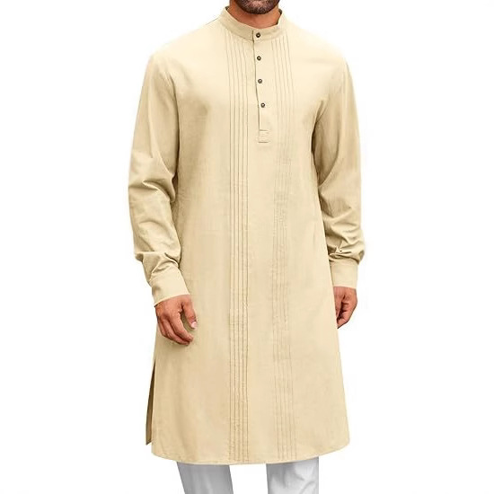 国境を越えた貿易アマゾン独立ステーションメンズ中東綿とリネンのボタンローブメンズミドル丈シャツポケット付き