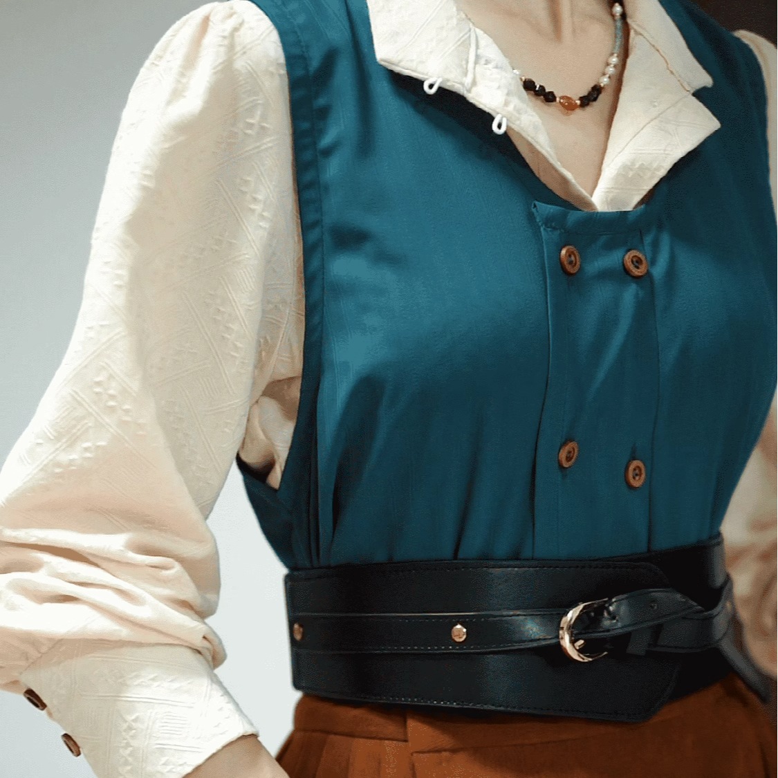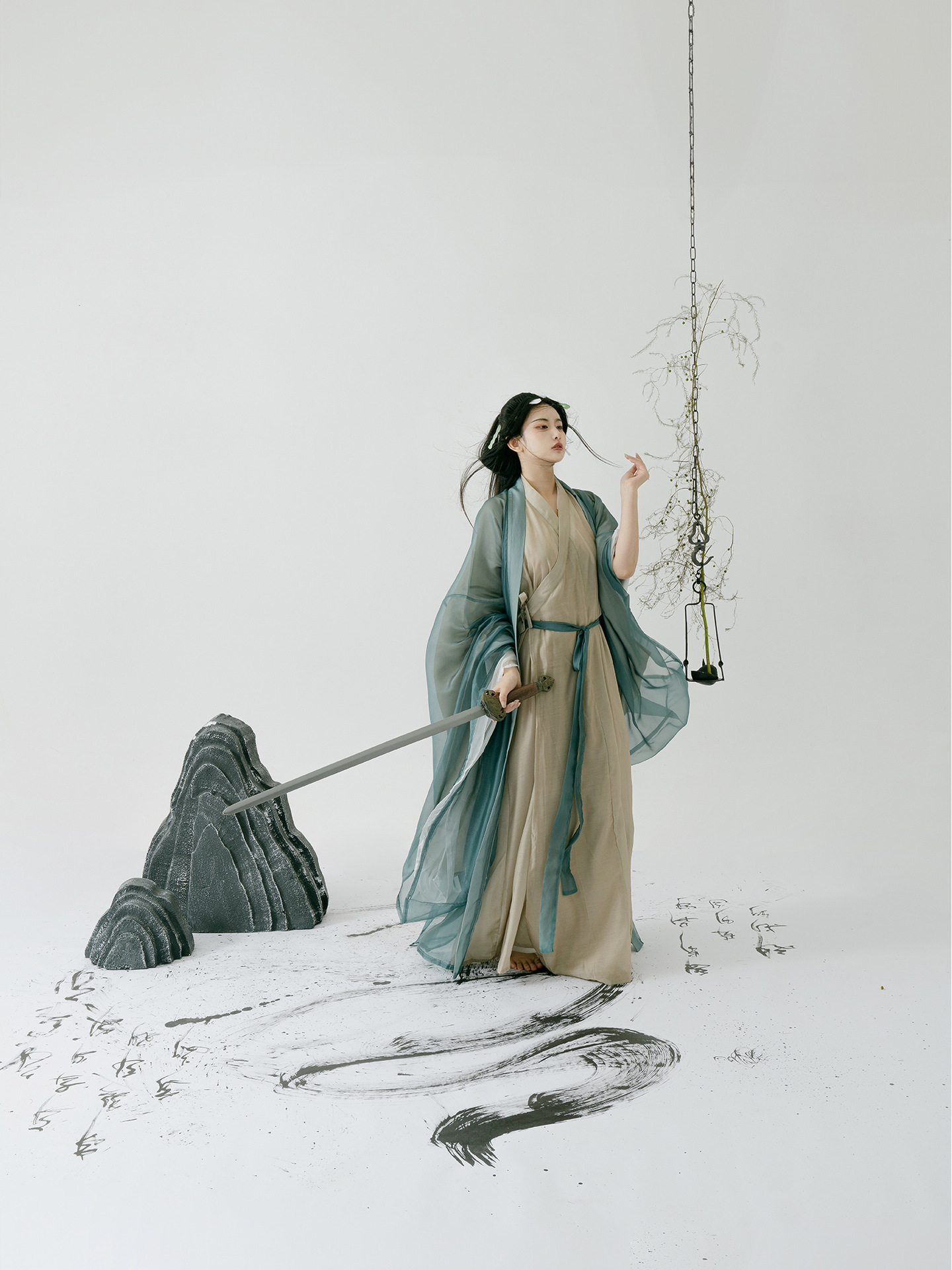 【・遊歩】オリジナル宋時代綿麻ワイドスリーブクロスカラーロングシャツ春夏薄手3点セット漢服