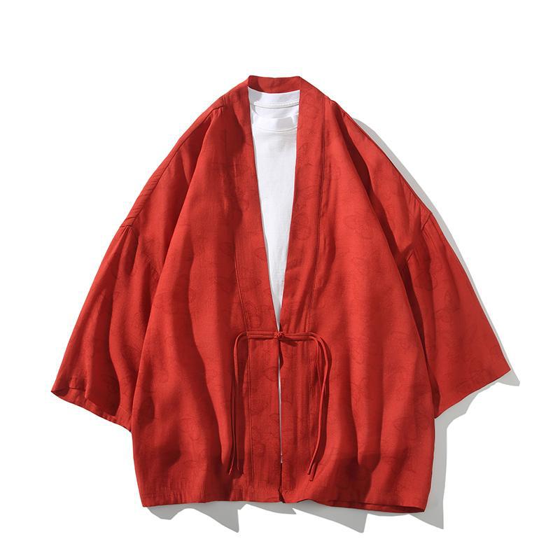 中国風の夏服メンズコットンとリネン漢服ドラゴン刺繍カーディガン日本大きいサイズレトロトレンディローブジャケット卸売