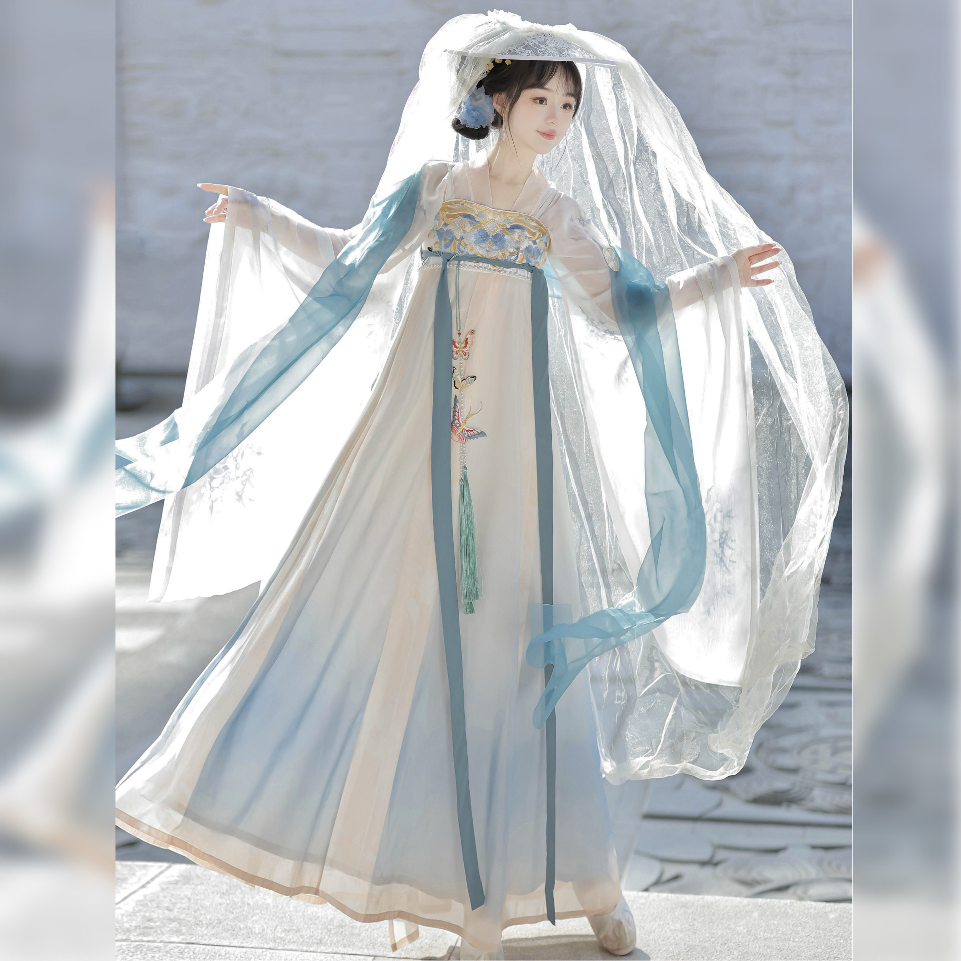 ユエジンジオリジナル【ユチュンファ】南北朝大袖スカートワンピース胸丈超妖精日常漢服春夏スタイル