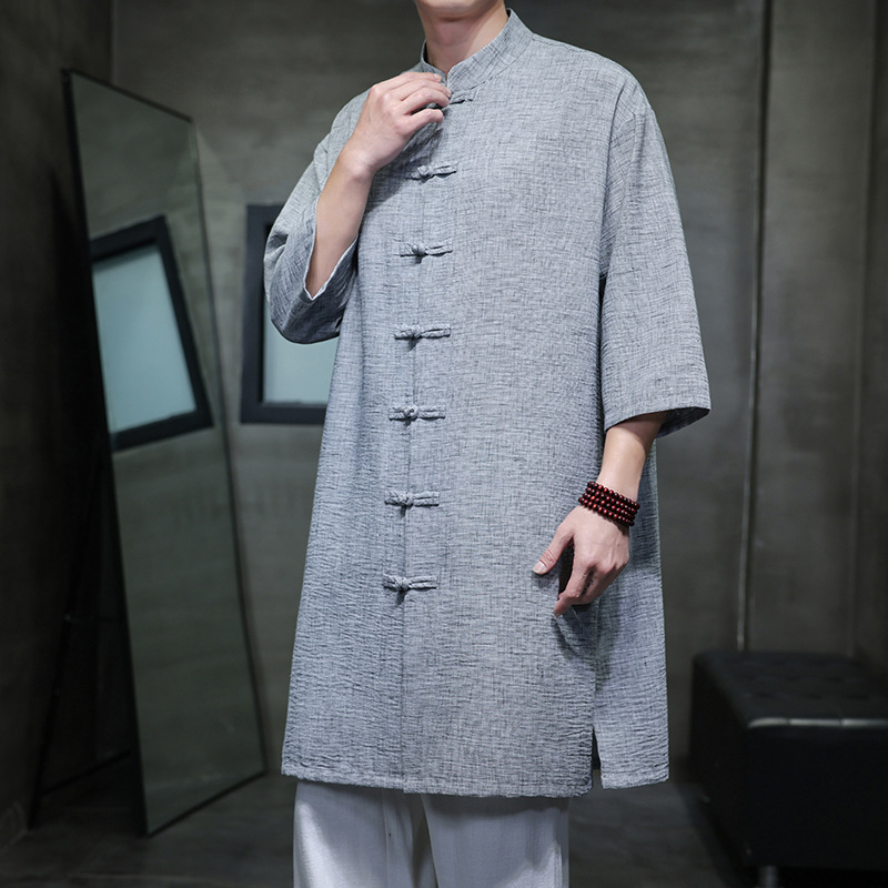 春と秋のビーズボタンローブエスニックスタイル禅服メンズ古代衣装カスタマーサービス中国唐スーツジャケット綿トップ