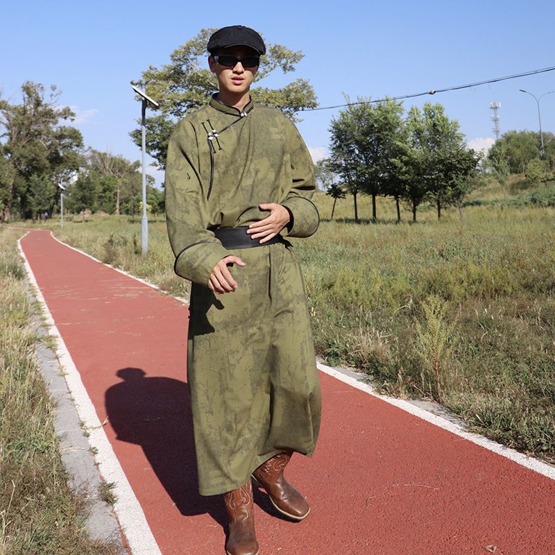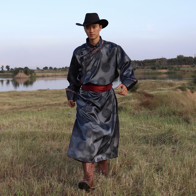 民族の服の男性の夏のモンゴルの服の長いタイプの新型のチベット族の服装の男性の成人の民族の風の復古の演出服