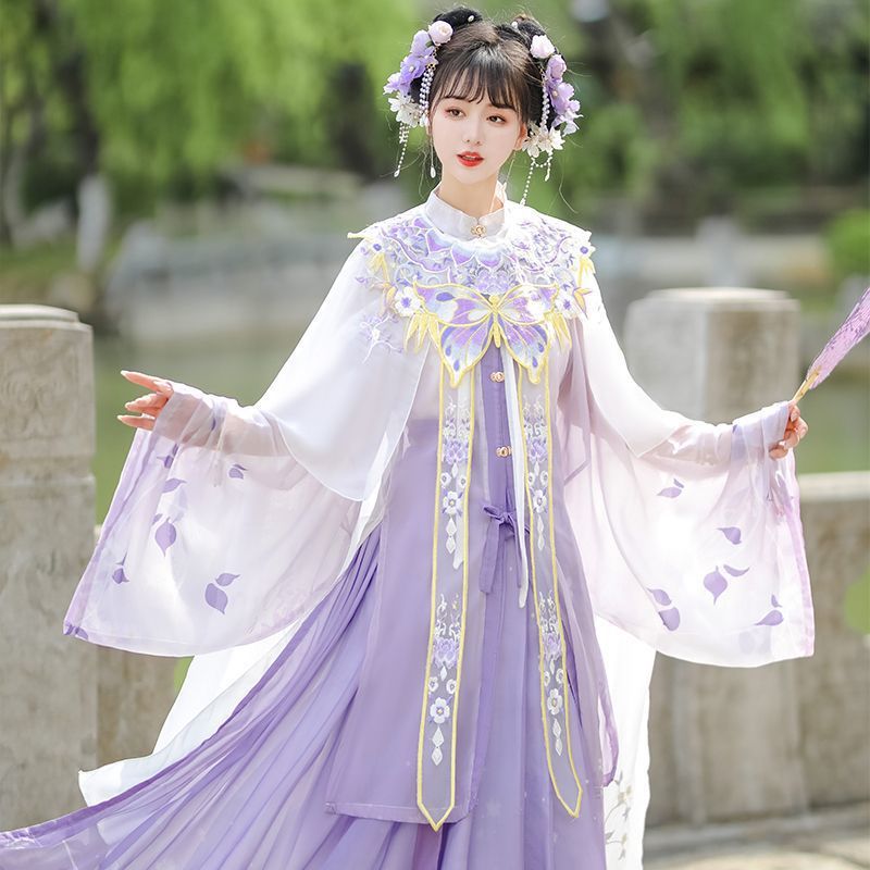 漢服紫中国風明朝長袖ジャケット雲肩古代風軽量通勤日常春夏 2024