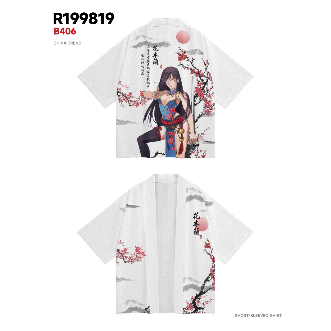 ファッション夏の着物クロスボーダー大花プリント七分シャツ道着カーディガンゆるい男羽织着物