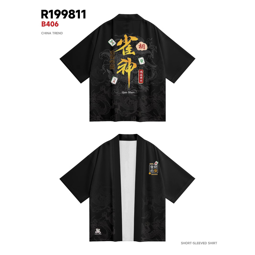 ファッション夏の着物クロスボーダー雀神プリント七分シャツ道衿カーディガンゆるい男羽织着物