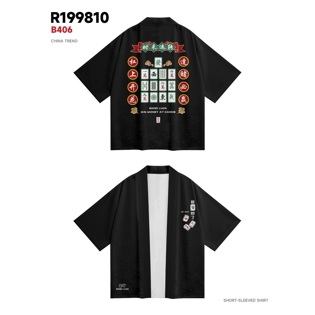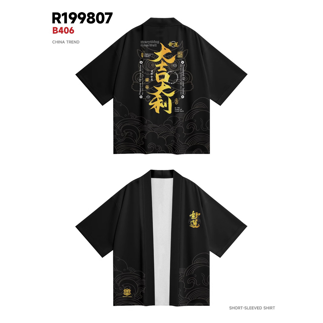 ファッション夏着物クロスボーダー善悪プリント七分シャツ道着カーディガンゆるい男羽织着物