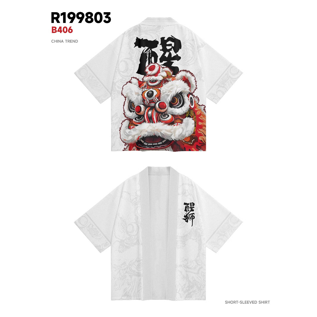 ファッション夏の着物クロスボーダー生肖未羊プリント七分シャツ道衣カーディガンゆるい男羽织着物