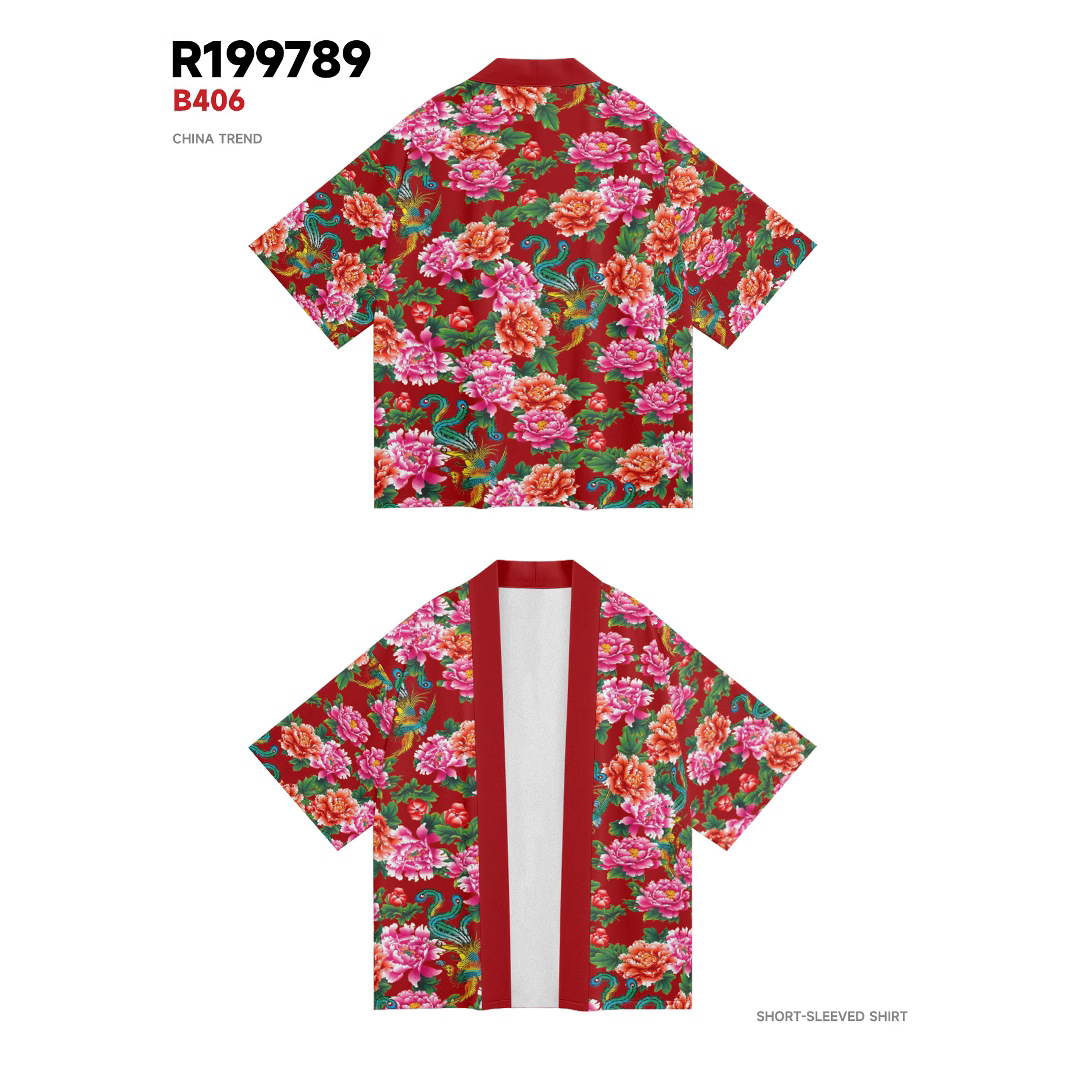 ファッション夏の着物クロスボーダー大花プリント七分シャツ道着カーディガンゆるい男羽织着物