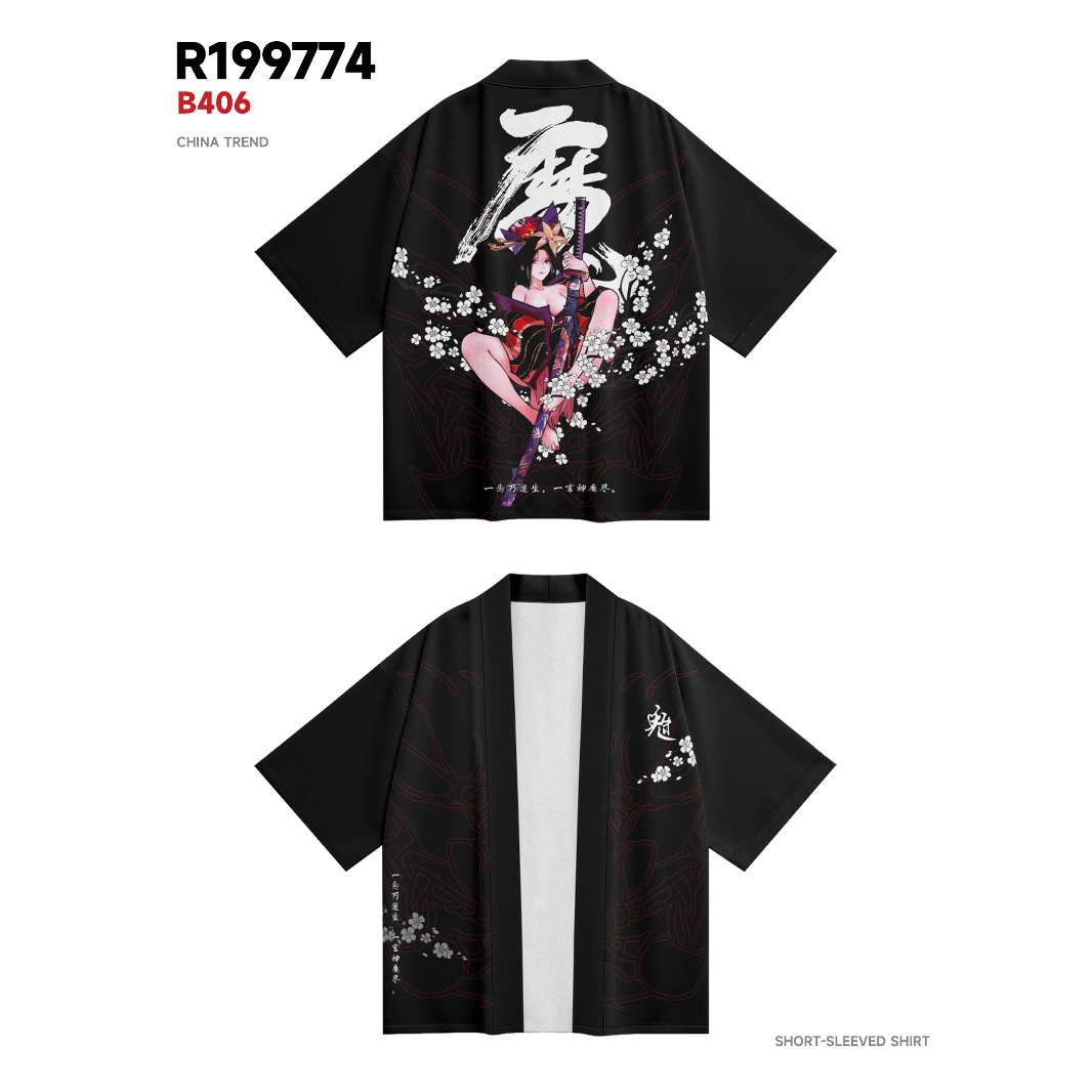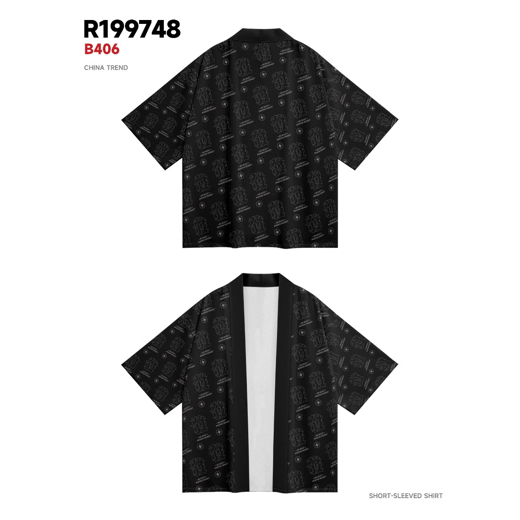 ファッション夏着物クロスボーダー善悪プリント七分シャツ道着カーディガンゆるい男羽织着物