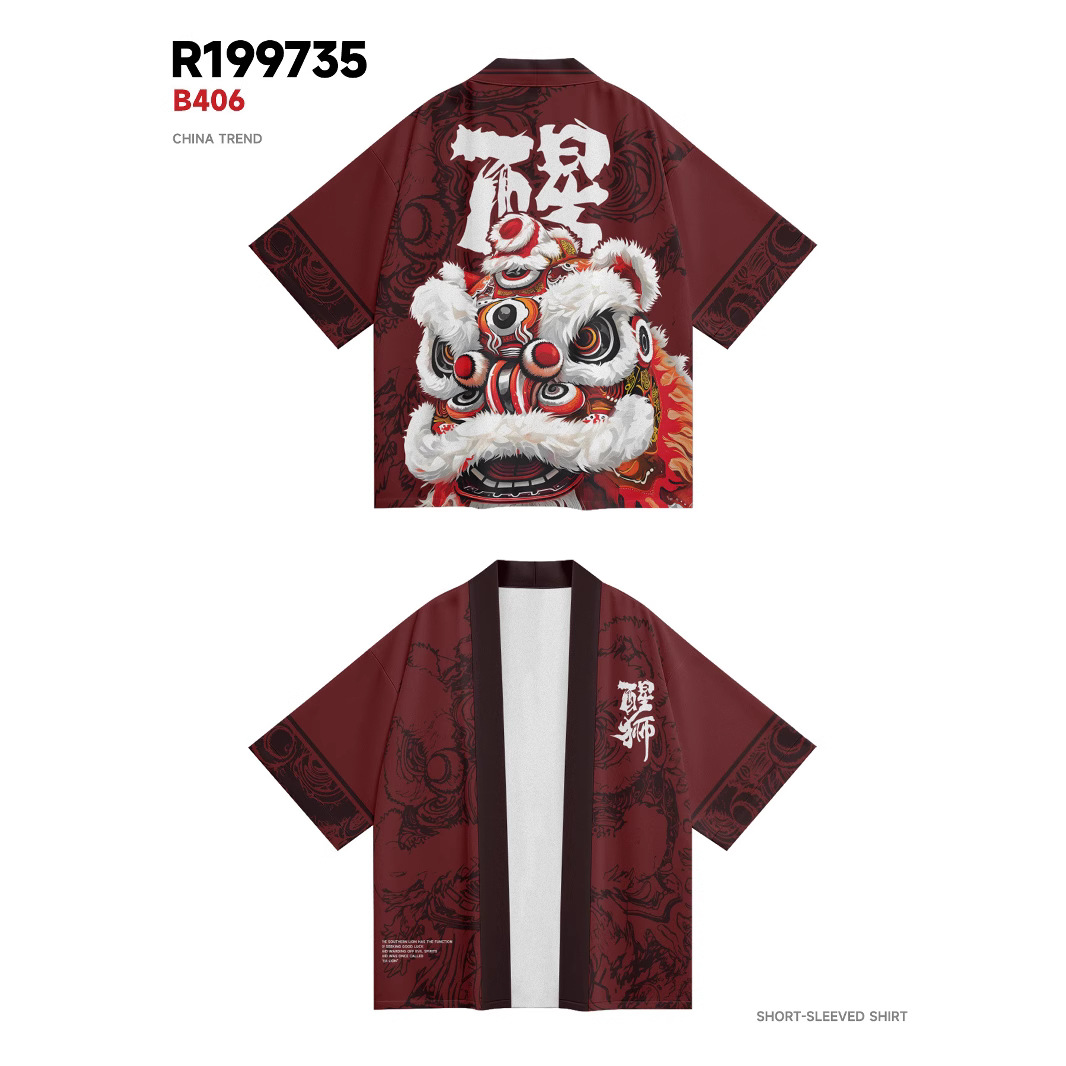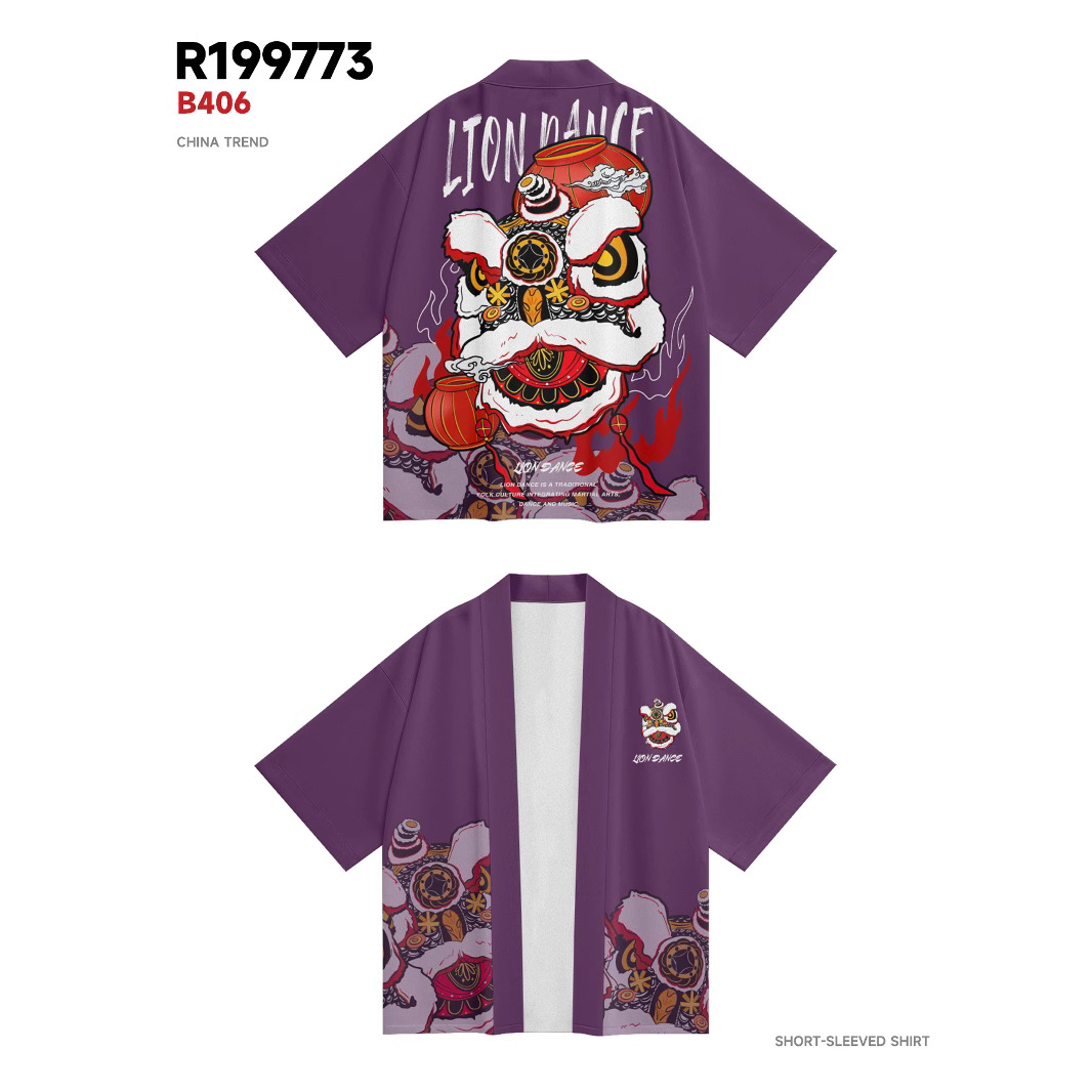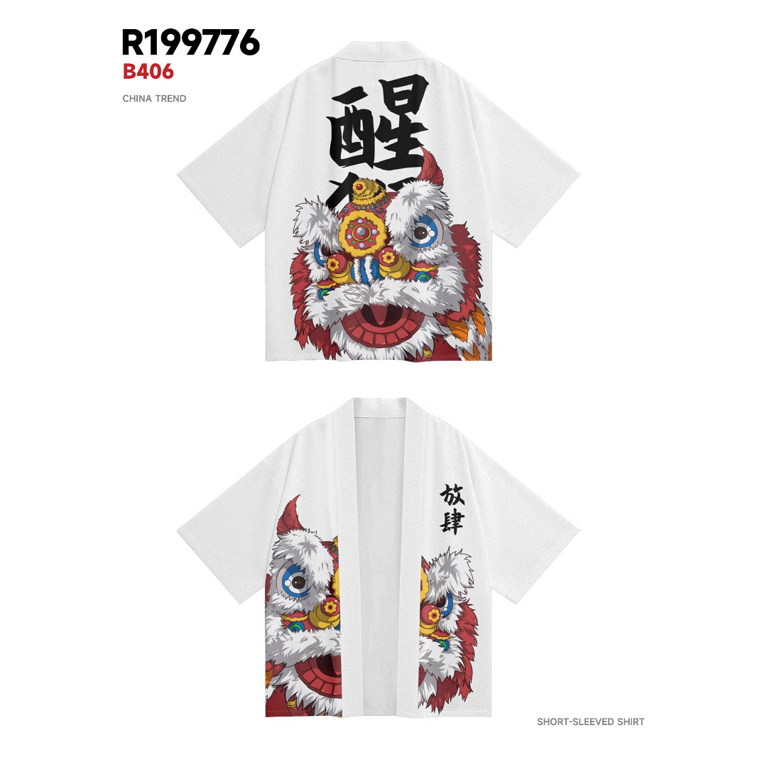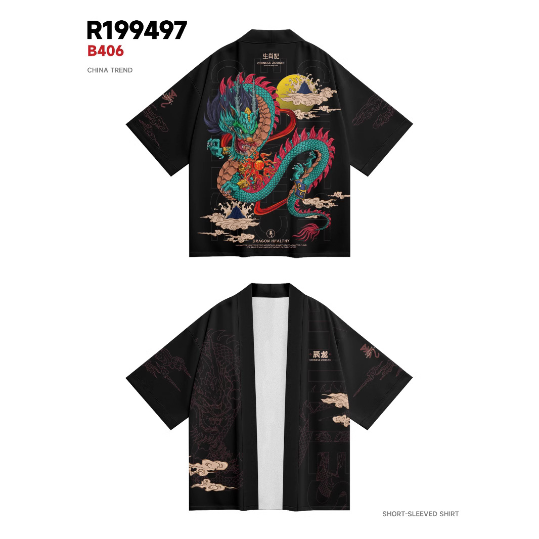 ファッション夏の着物クロスボーダー生肖辰龍プリント七分シャツ道衣カーディガンゆるい男羽織着物