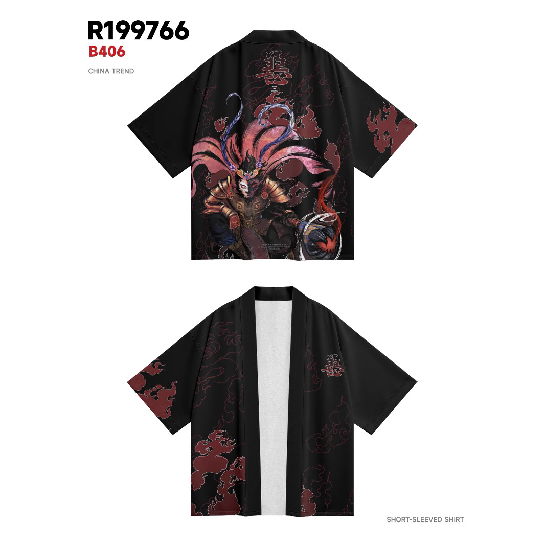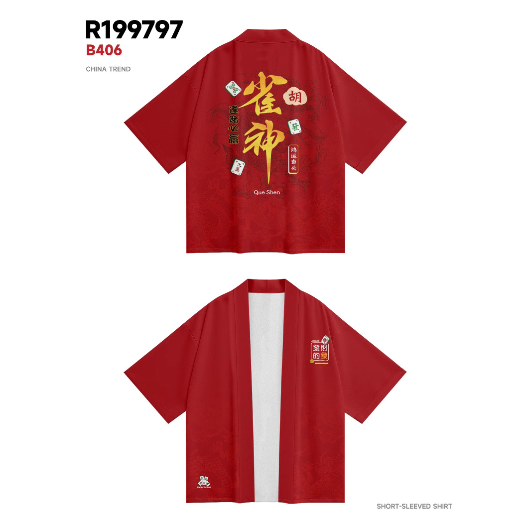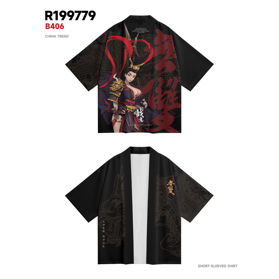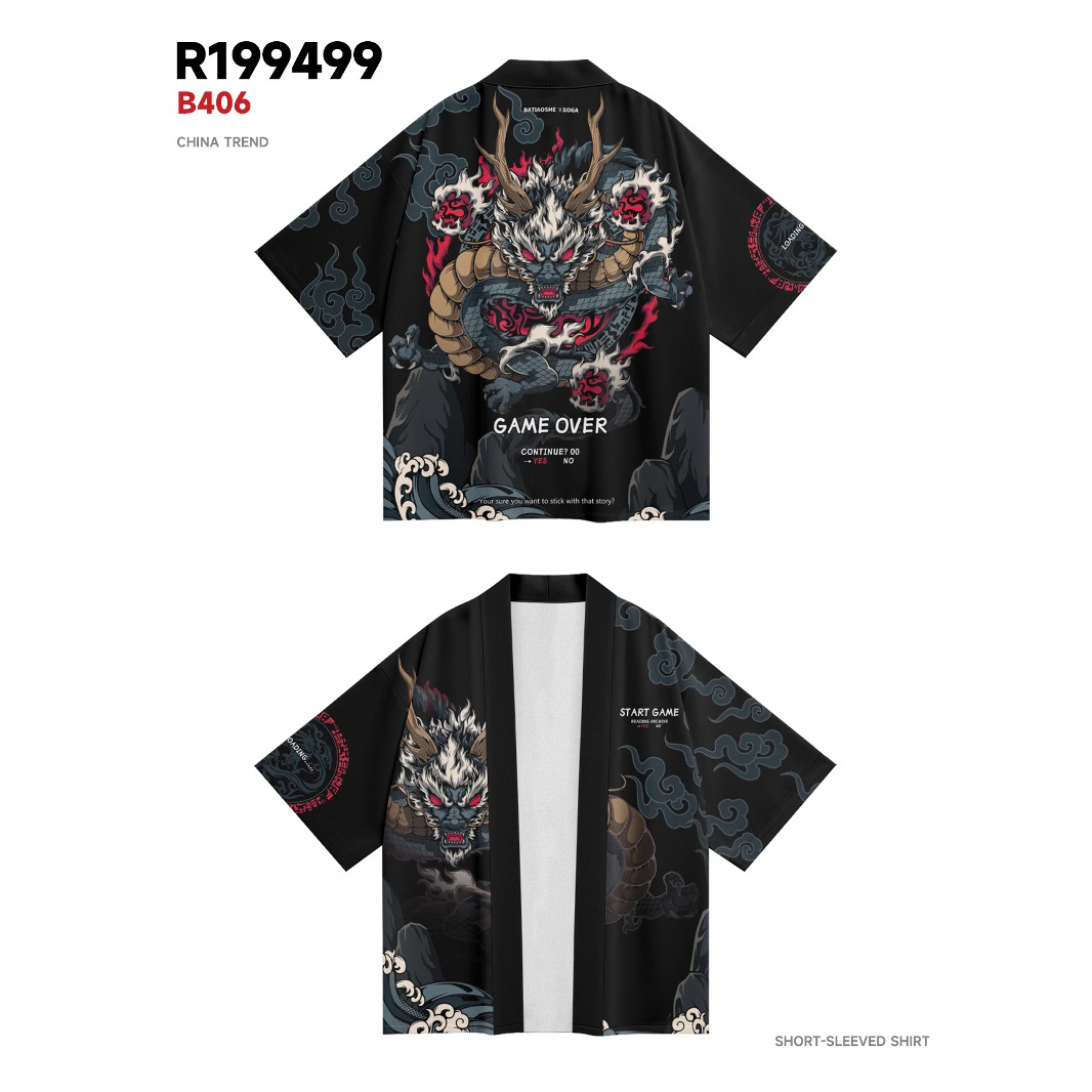 ファッション夏の着物クロスボーダー生肖辰龍プリント七分シャツ道衣カーディガンゆるい男羽織着物