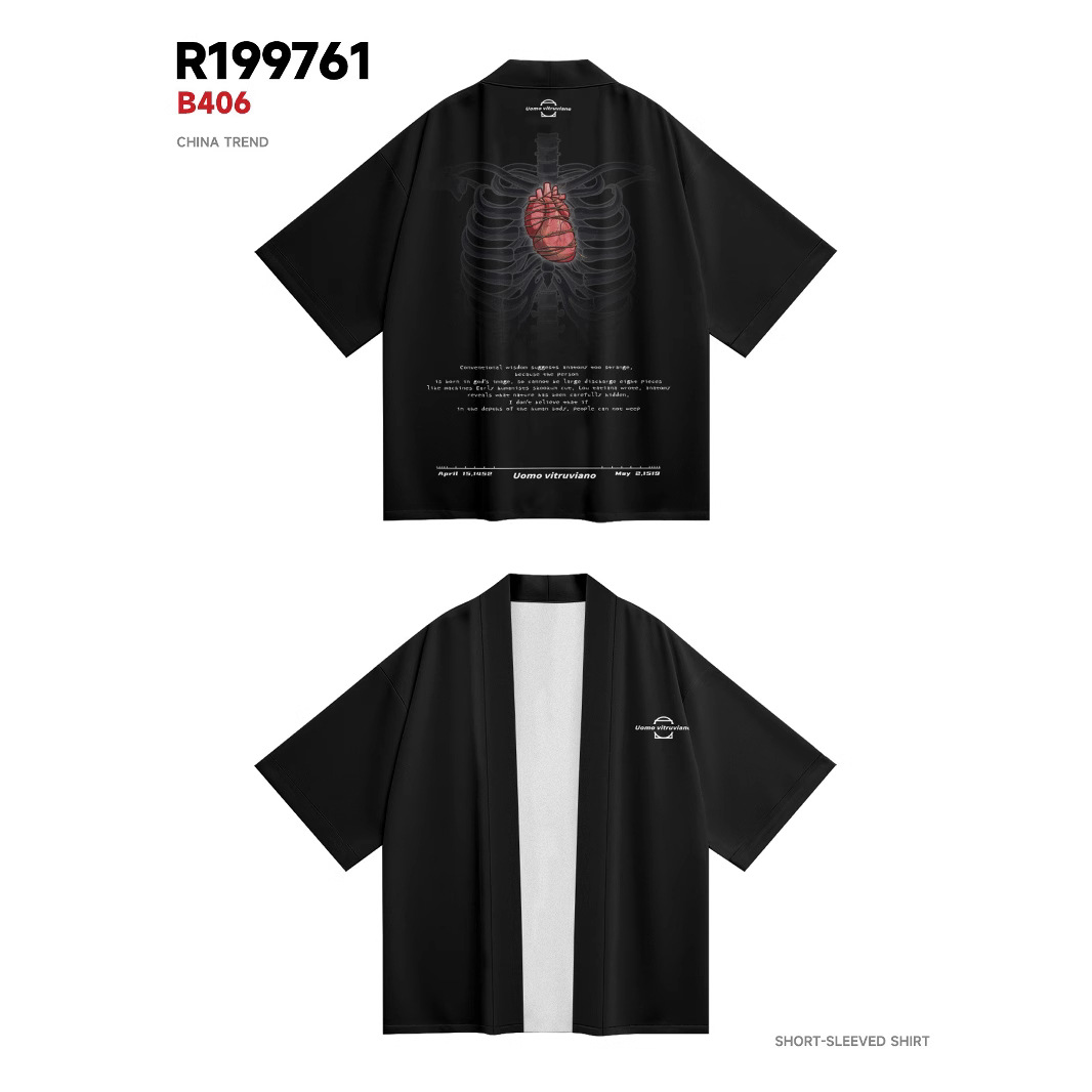 ファッション夏の着物クロスボーダー心臓プリント七分シャツ道着カーディガンゆるい男羽织着物