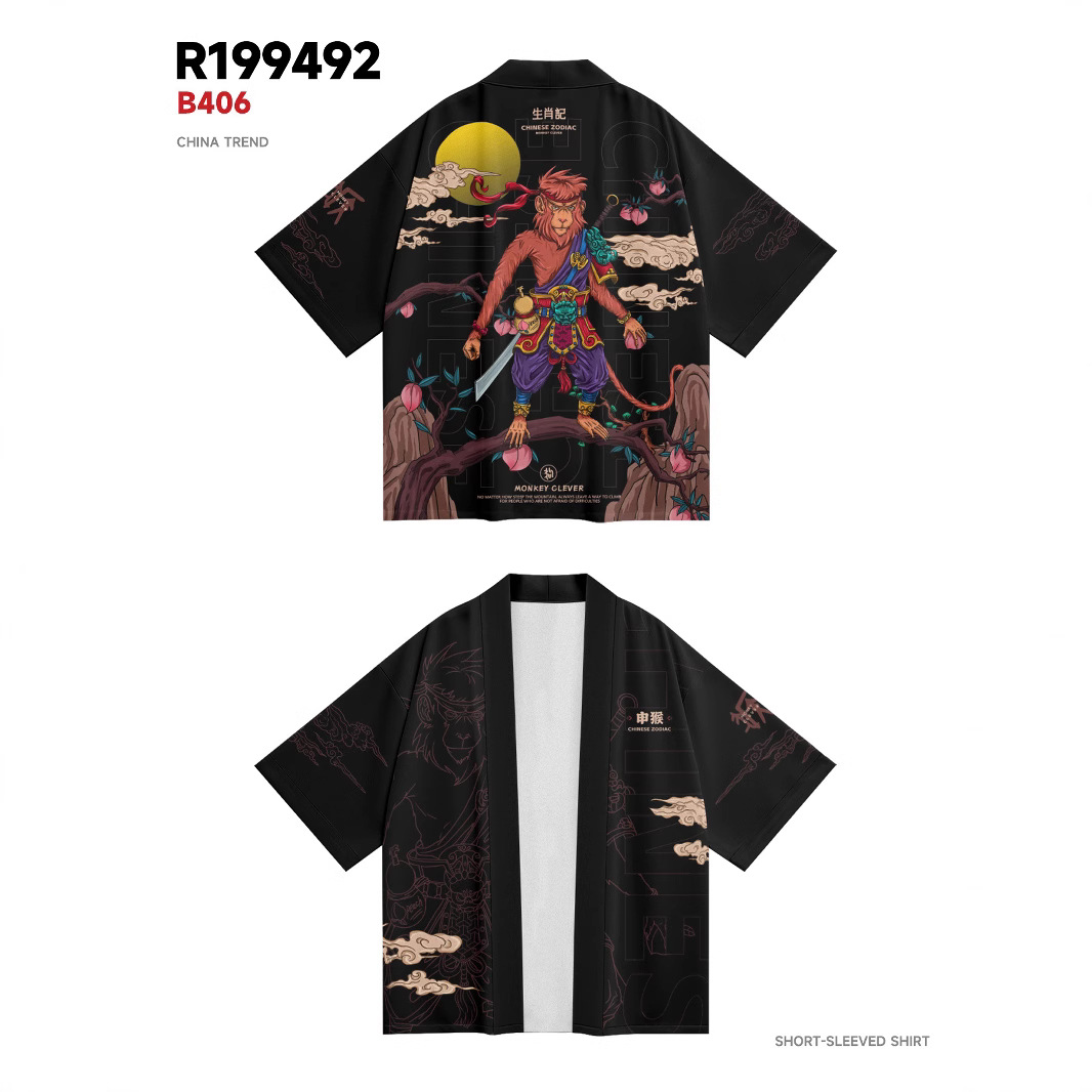 ファッション夏の着物クロスボーダー生肖申猿プリント七分シャツ道衣カーディガンゆるい男羽織着物