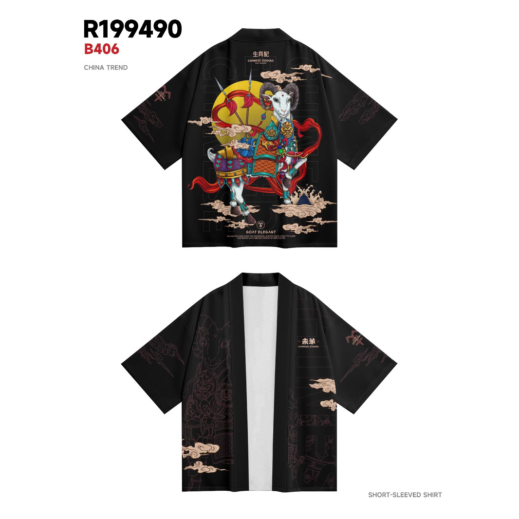 ファッション夏の着物クロスボーダー生肖未羊プリント七分シャツ道衣カーディガンゆるい男羽织着物