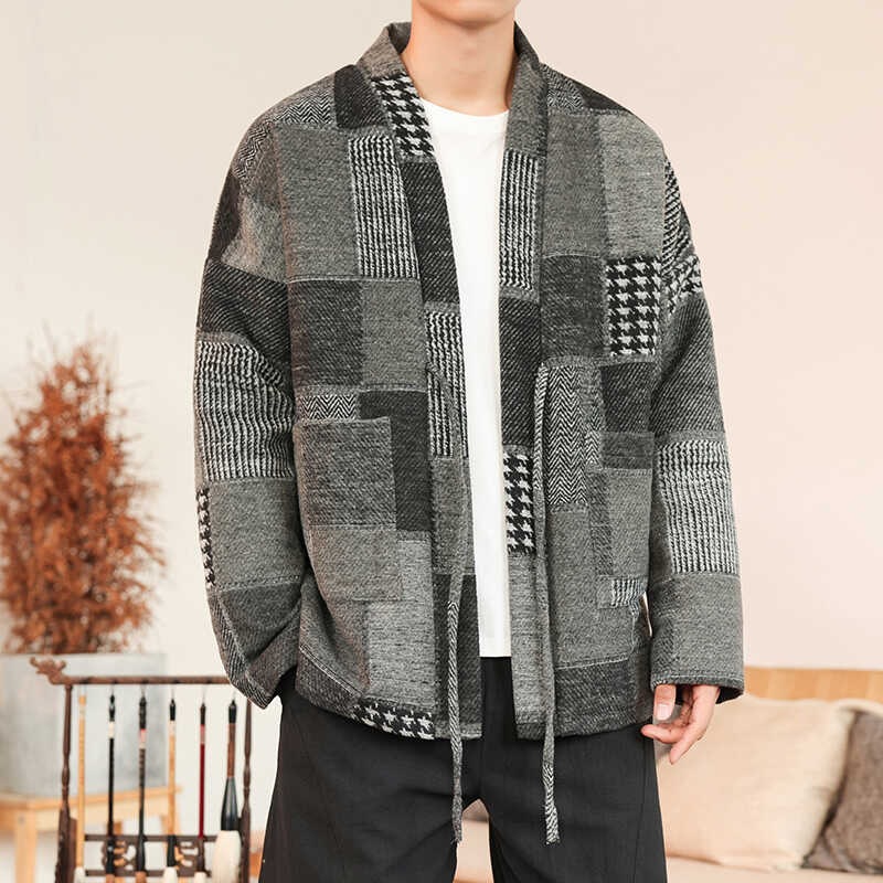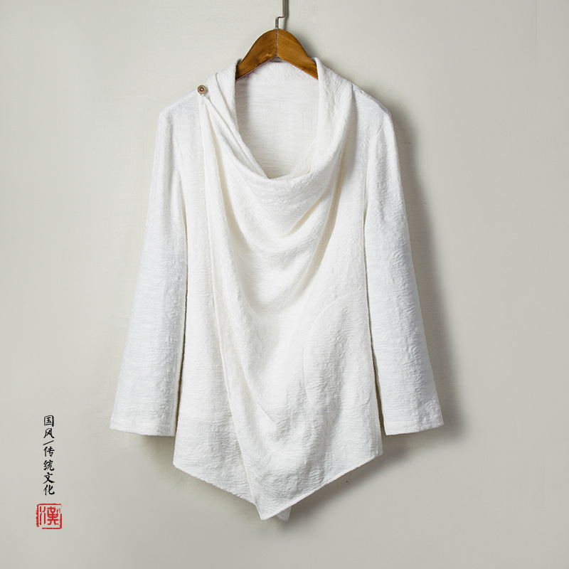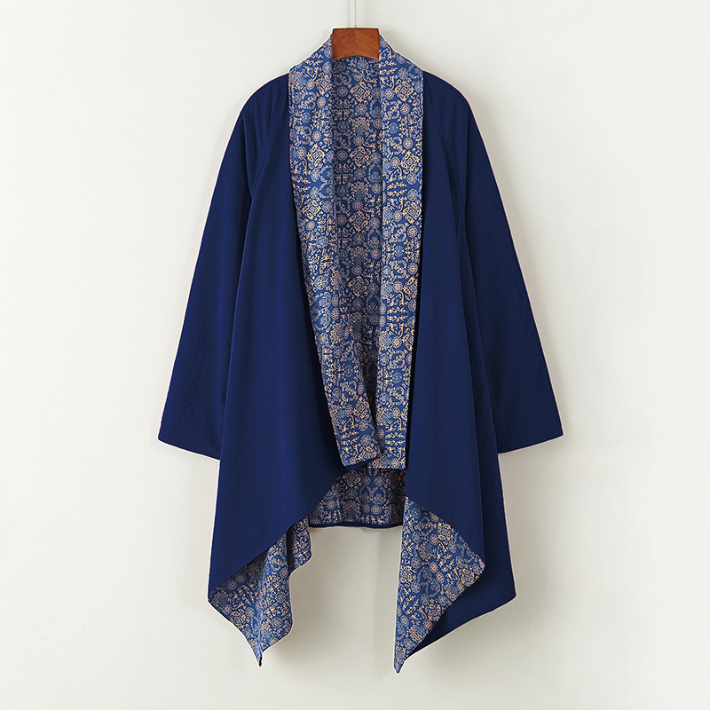 秋冬新作メンズ民族風道着綿麻古風カジュアルレトロ国風青年両面マントコート男